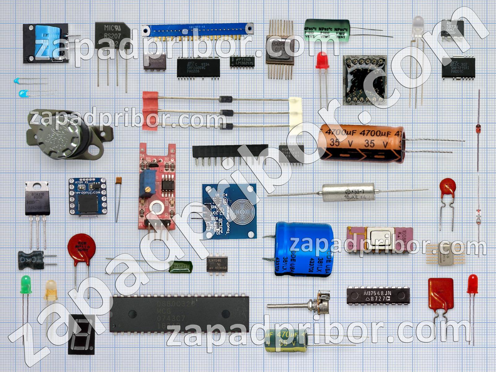 Кроме этих радиодеталей на нашем сайте вы сможете найти большой перечень компонентов. Осуществляйте поиск по основным типам радиодеталей таких как тумблер, фотодиод, соединитель, трансформатор, преобразователь, светодиод, индуктивность, колодки, диод, адаптер, микросхема, разъем, контакты, индикатор, диодный мост, экран, датчик, переключатель, транзистор, тиристор, резистор, реле, резонатор, конденсатор, усилитель, кнопка, дроссель, дисплей и другие.