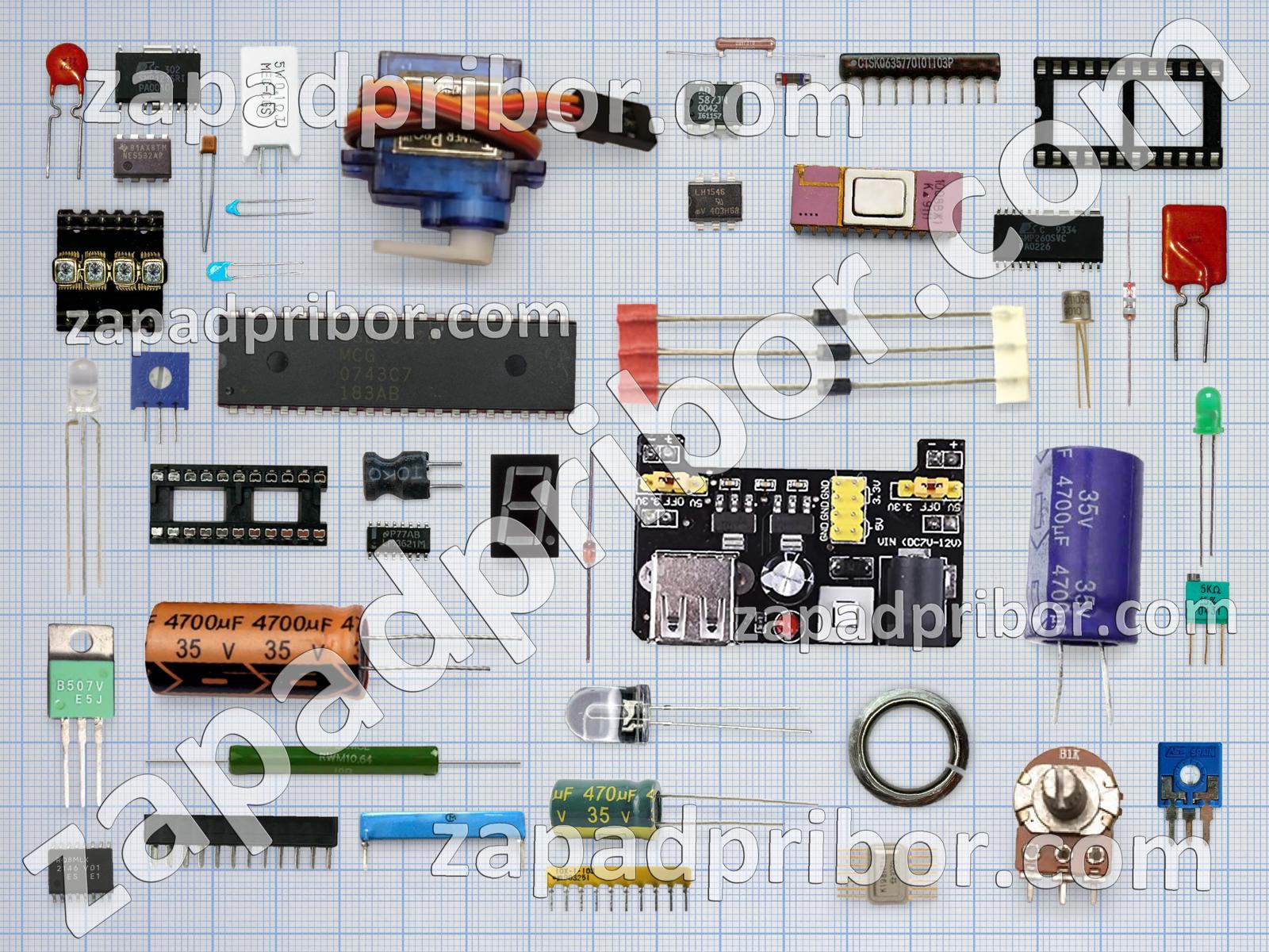 Кроме этих радиодеталей на нашем сайте вы сможете найти большой перечень компонентов. Осуществляйте поиск по основным типам радиодеталей таких как разъем, контакты, резистор, индикатор, переключатель, кнопка, конденсатор, экран, адаптер, реле, колодки, дроссель, диод, тумблер, фотодиод, светодиод, дисплей, диодный мост, трансформатор, тиристор, индуктивность, усилитель, резонатор, датчик, микросхема, транзистор, преобразователь, соединитель и другие.