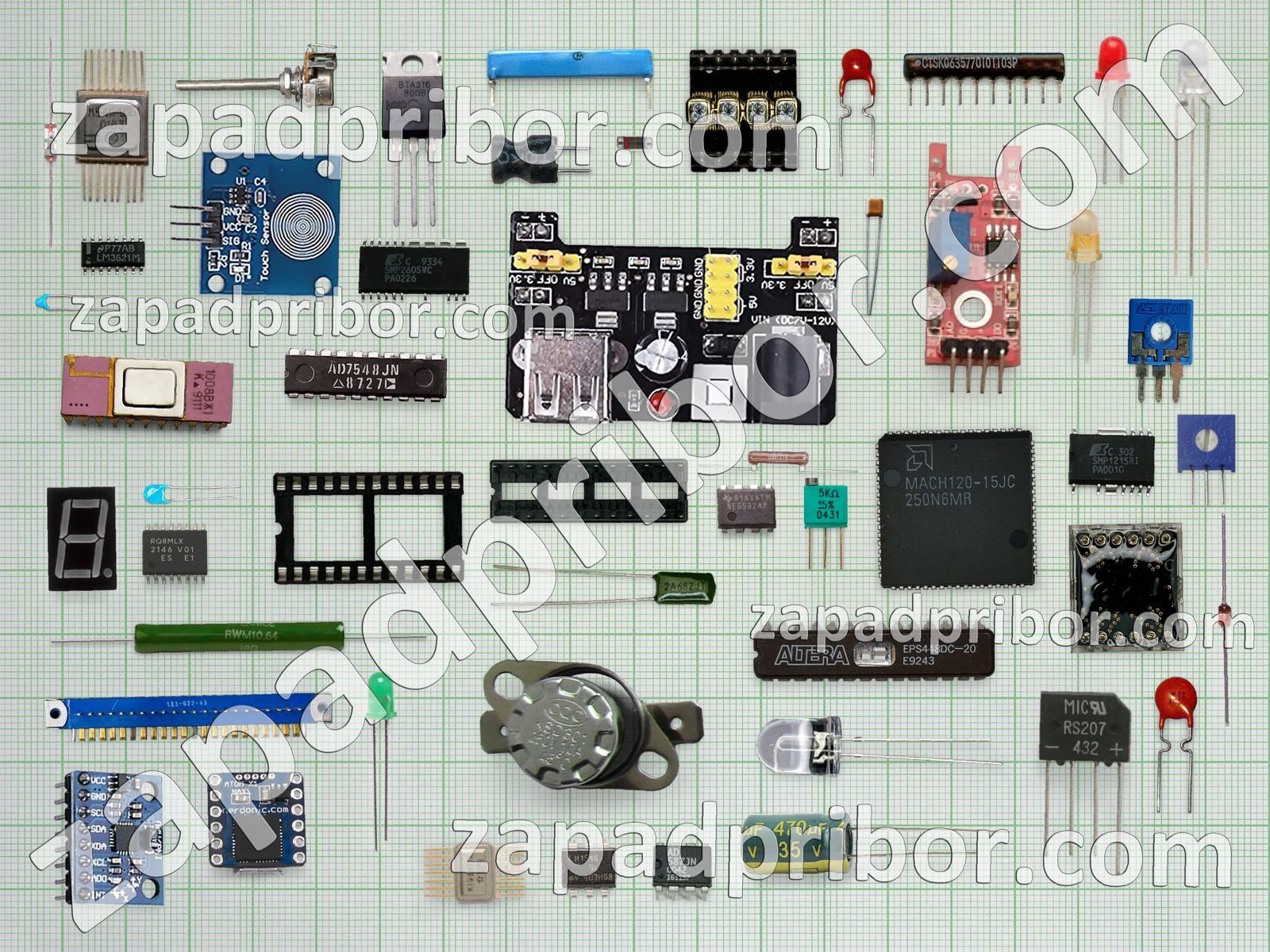 Кроме этих радиодеталей на нашем сайте вы сможете найти большой перечень компонентов. Осуществляйте поиск по основным типам радиодеталей таких как соединитель, транзистор, тумблер, конденсатор, дисплей, диодный мост, усилитель, преобразователь, экран, тиристор, колодки, фотодиод, резонатор, индикатор, индуктивность, диод, переключатель, микросхема, резистор, датчик, разъем, светодиод, контакты, трансформатор, кнопка, адаптер, дроссель, реле и другие.