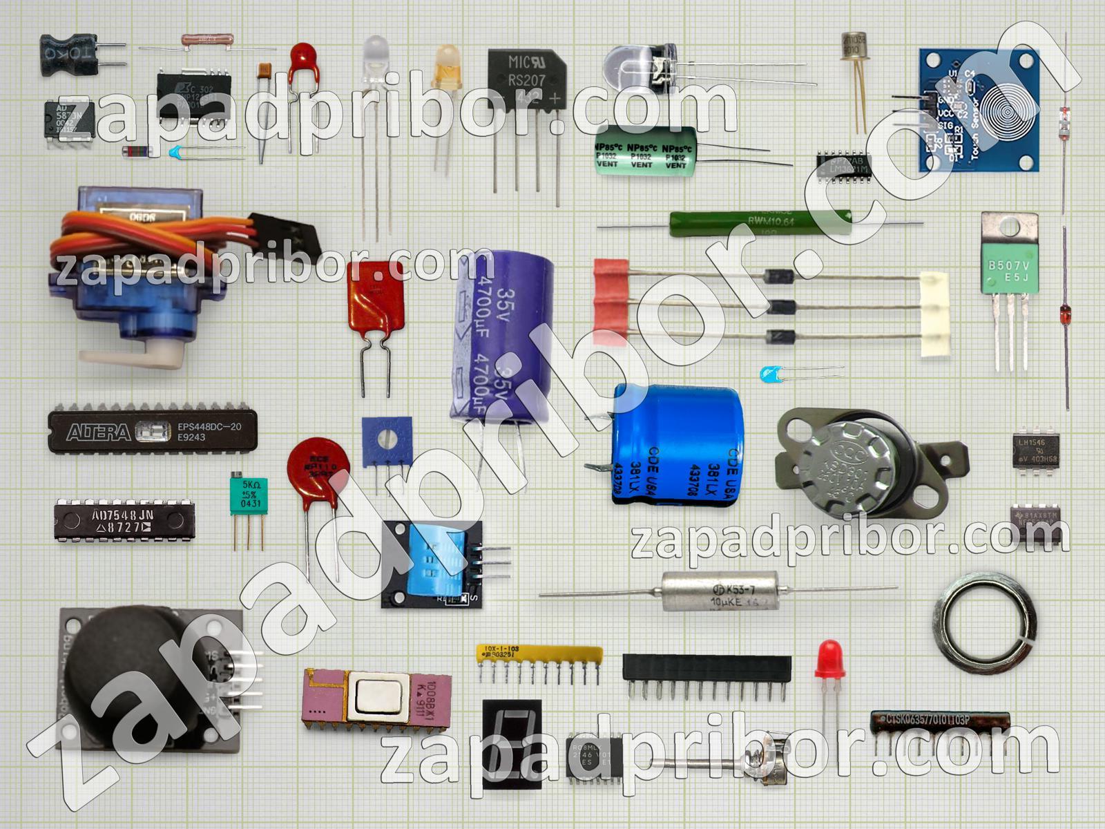 Кроме этих радиодеталей на нашем сайте вы сможете найти большой перечень компонентов. Осуществляйте поиск по основным типам радиодеталей таких как контакты, реле, индуктивность, экран, разъем, дроссель, трансформатор, кнопка, переключатель, светодиод, усилитель, диод, индикатор, преобразователь, диодный мост, дисплей, тиристор, колодки, фотодиод, тумблер, резонатор, датчик, соединитель, резистор, транзистор, адаптер, микросхема, конденсатор и другие.