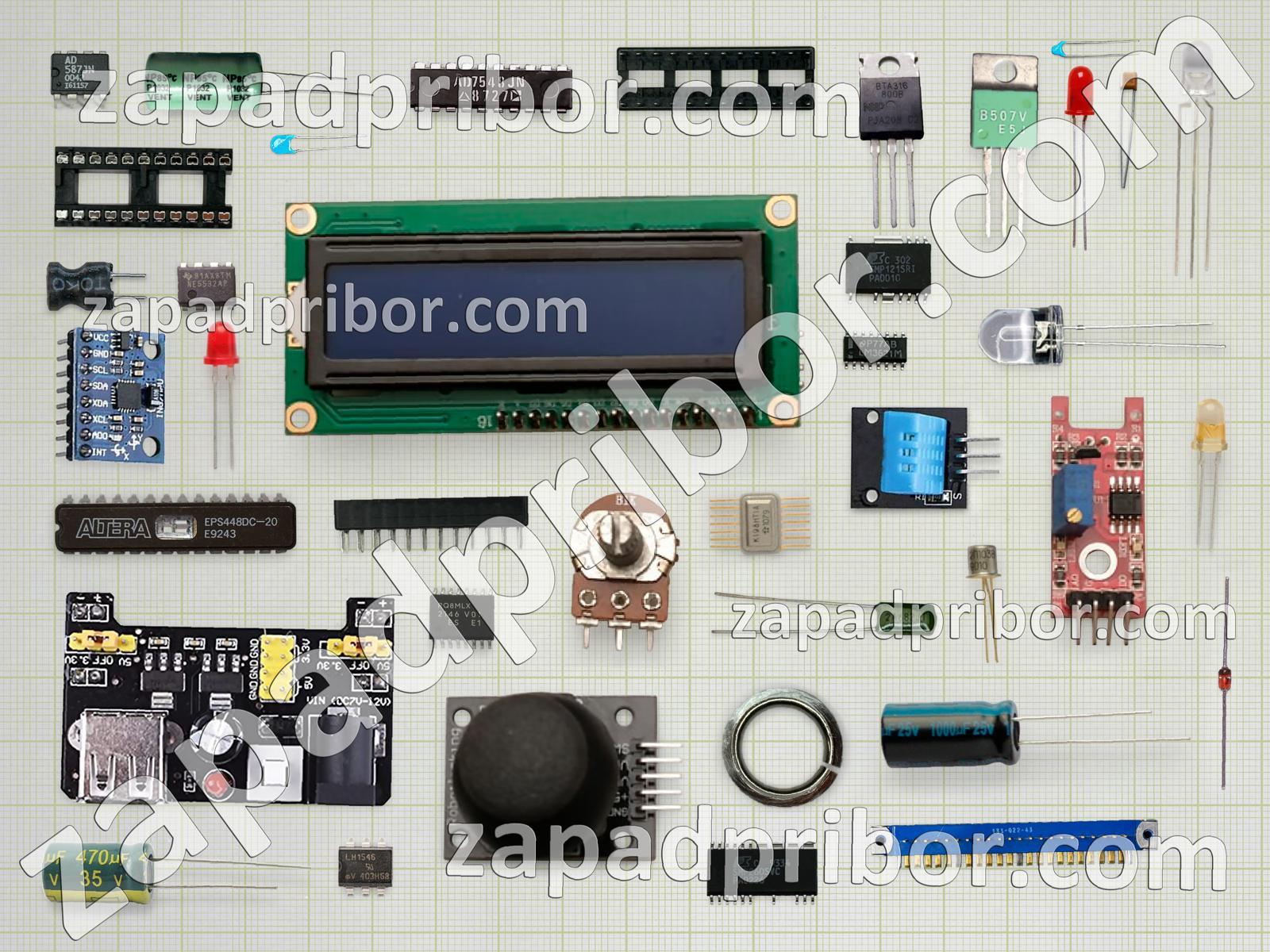 Кроме этих радиодеталей на нашем сайте вы сможете найти большой перечень компонентов. Осуществляйте поиск по основным типам радиодеталей таких как переключатель, разъем, усилитель, резонатор, фотодиод, колодки, экран, трансформатор, преобразователь, кнопка, светодиод, реле, резистор, тумблер, дисплей, индуктивность, датчик, тиристор, контакты, диод, диодный мост, индикатор, транзистор, конденсатор, адаптер, микросхема, соединитель, дроссель и другие.