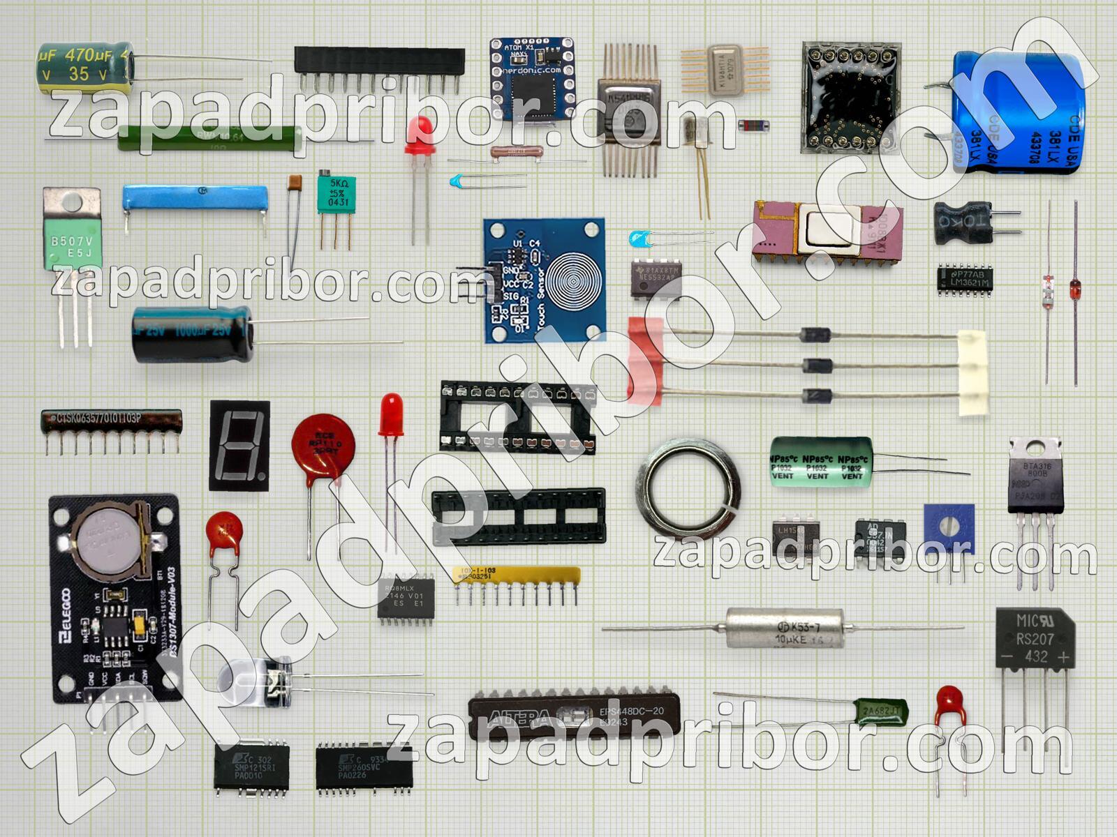 Кроме этих радиодеталей на нашем сайте вы сможете найти большой перечень компонентов. Осуществляйте поиск по основным типам радиодеталей таких как кнопка, трансформатор, датчик, тумблер, светодиод, тиристор, дисплей, индикатор, индуктивность, контакты, реле, транзистор, соединитель, конденсатор, диод, адаптер, резистор, разъем, экран, резонатор, фотодиод, дроссель, диодный мост, колодки, преобразователь, микросхема, усилитель, переключатель и другие.
