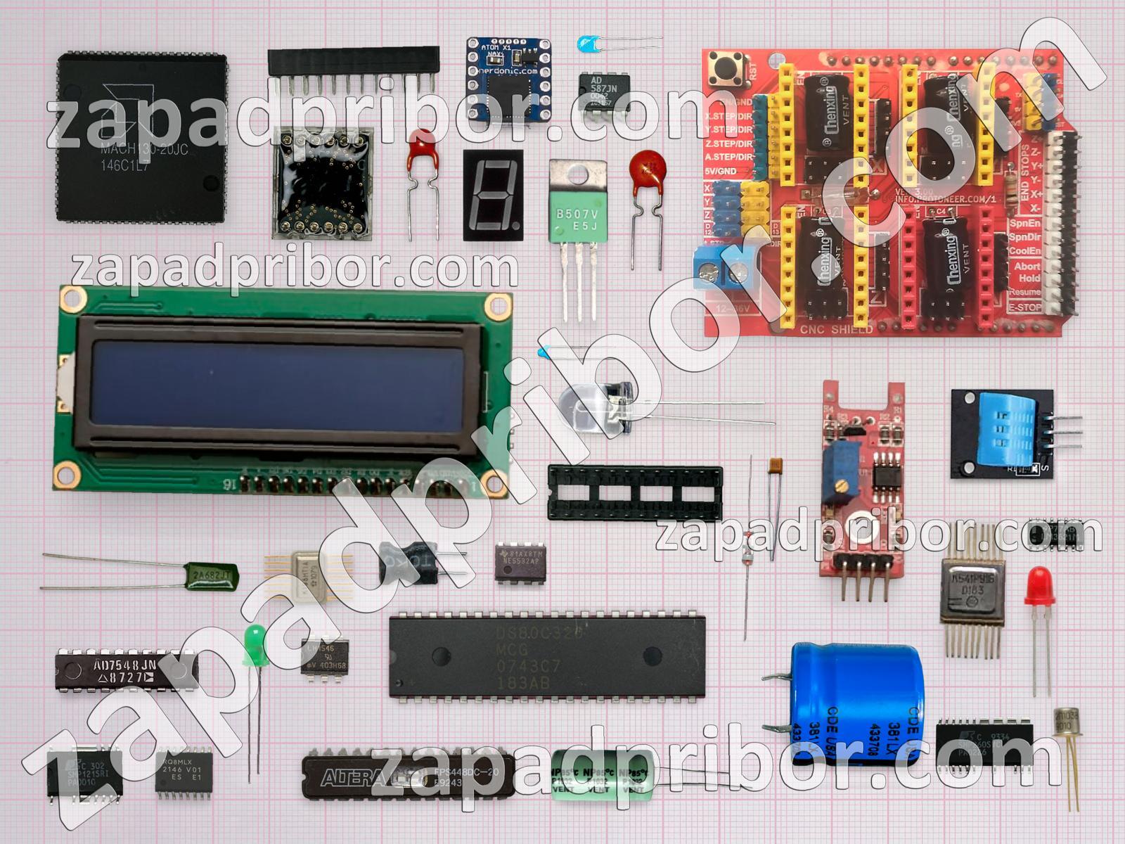 Кроме этих радиодеталей на нашем сайте вы сможете найти большой перечень компонентов. Осуществляйте поиск по основным типам радиодеталей таких как резистор, резонатор, дисплей, кнопка, разъем, датчик, диод, дроссель, индуктивность, светодиод, конденсатор, контакты, реле, преобразователь, фотодиод, переключатель, колодки, усилитель, экран, диодный мост, трансформатор, тумблер, индикатор, транзистор, тиристор, микросхема, соединитель, адаптер и другие.