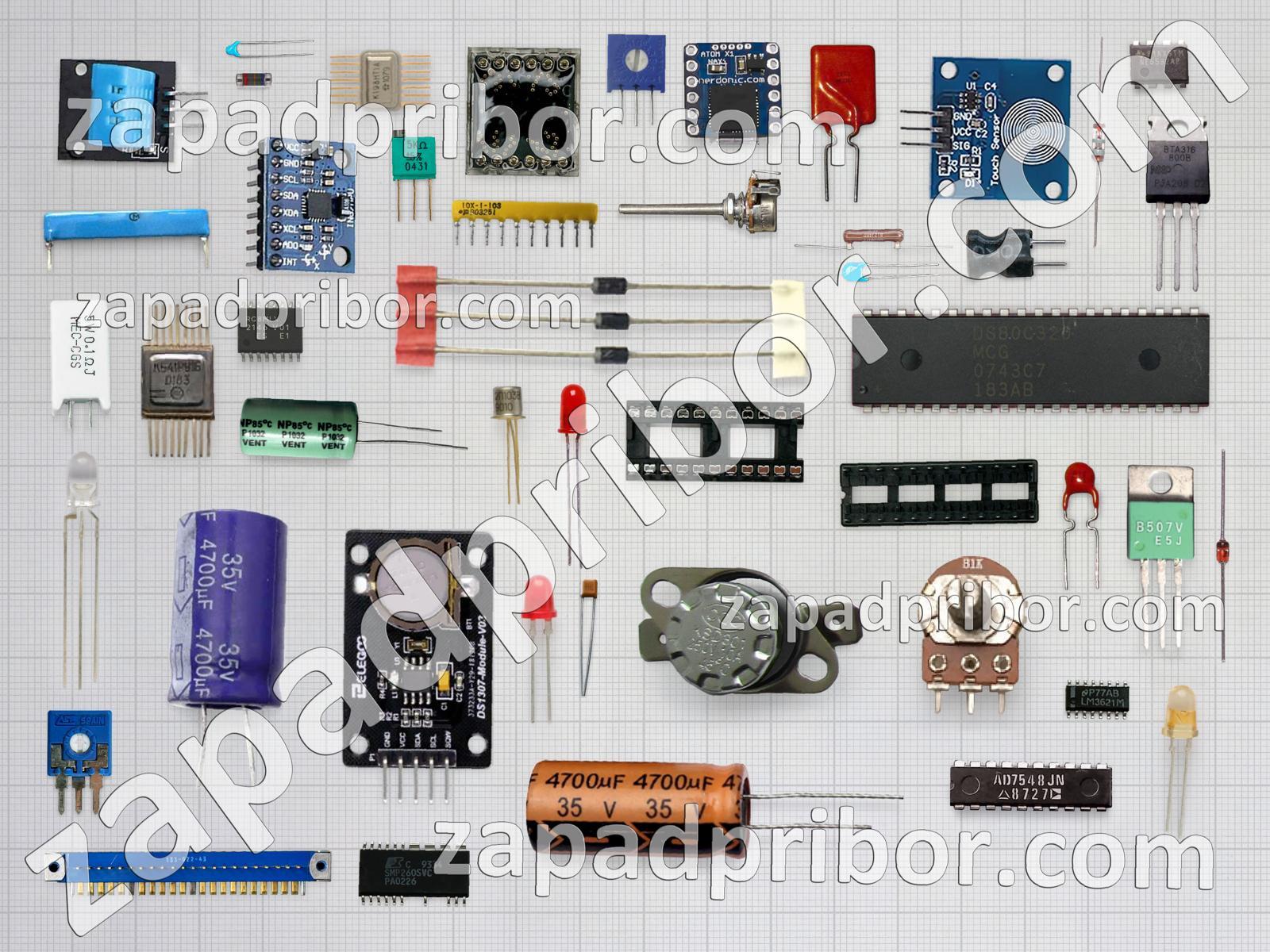 Кроме этих радиодеталей на нашем сайте вы сможете найти большой перечень компонентов. Осуществляйте поиск по основным типам радиодеталей таких как резонатор, транзистор, усилитель, преобразователь, микросхема, кнопка, адаптер, трансформатор, дроссель, индикатор, фотодиод, экран, конденсатор, колодки, соединитель, дисплей, индуктивность, контакты, резистор, тумблер, тиристор, диодный мост, разъем, реле, светодиод, переключатель, диод, датчик и другие.