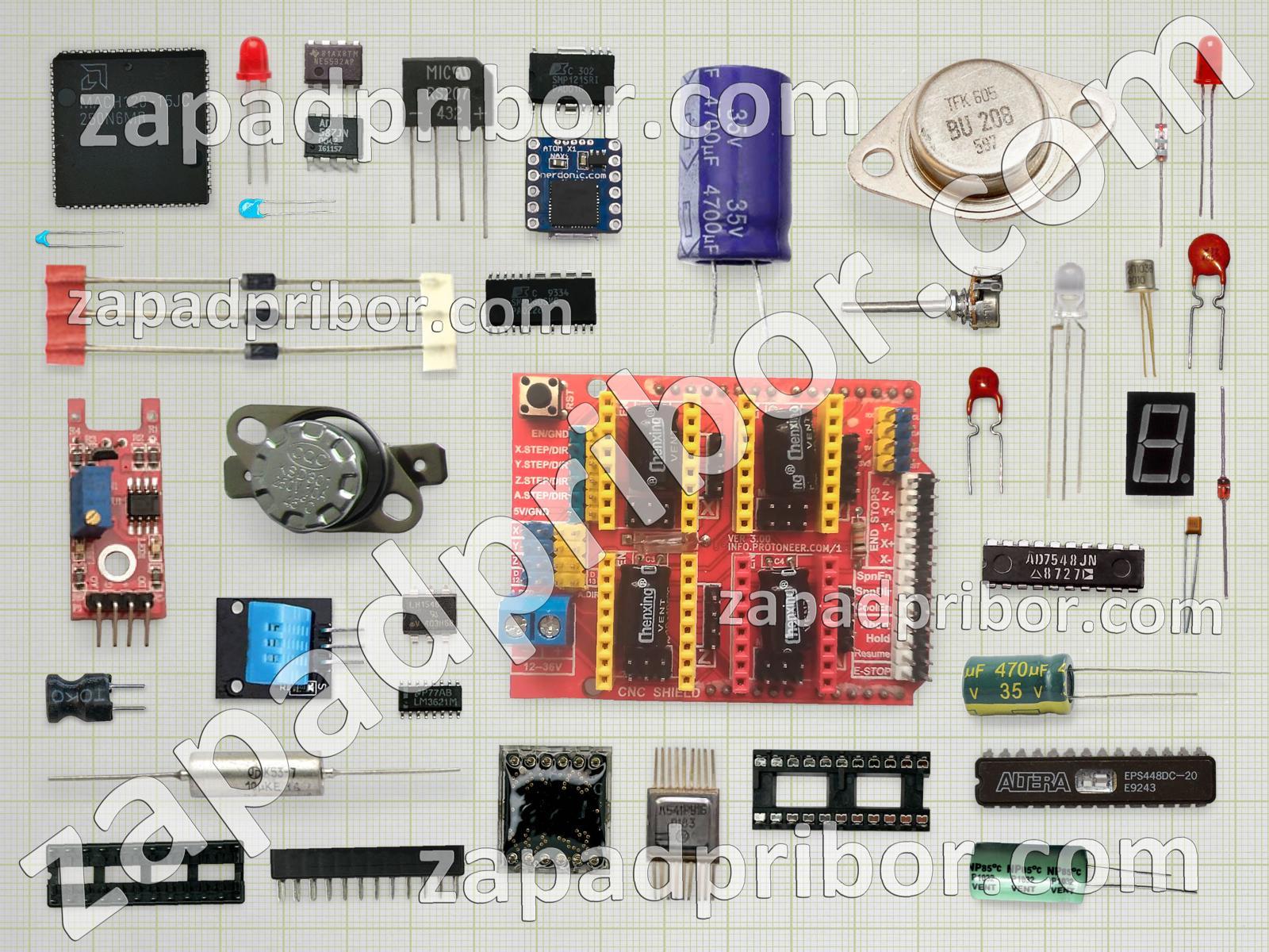 Кроме этих радиодеталей на нашем сайте вы сможете найти большой перечень компонентов. Осуществляйте поиск по основным типам радиодеталей таких как светодиод, реле, преобразователь, конденсатор, диод, усилитель, дисплей, датчик, экран, адаптер, контакты, индуктивность, кнопка, тиристор, трансформатор, резистор, переключатель, соединитель, индикатор, микросхема, тумблер, диодный мост, фотодиод, колодки, разъем, транзистор, резонатор, дроссель и другие.