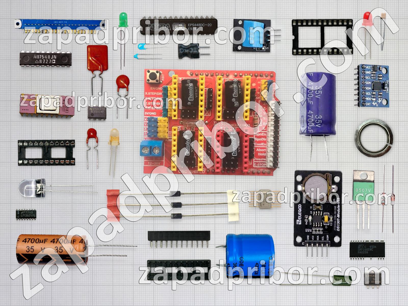 Кроме этих радиодеталей на нашем сайте вы сможете найти большой перечень компонентов. Осуществляйте поиск по основным типам радиодеталей таких как соединитель, тиристор, преобразователь, колодки, индикатор, микросхема, переключатель, резистор, диодный мост, светодиод, дроссель, дисплей, диод, усилитель, резонатор, экран, кнопка, тумблер, адаптер, контакты, реле, индуктивность, разъем, трансформатор, транзистор, фотодиод, конденсатор, датчик и другие.