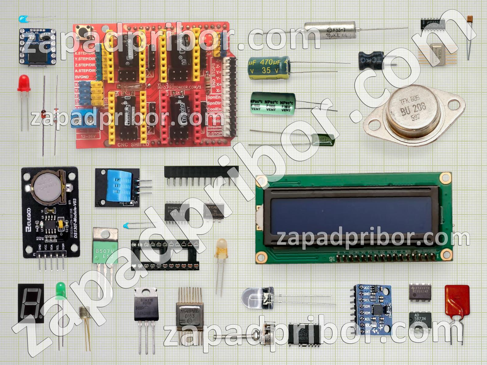 Кроме этих радиодеталей на нашем сайте вы сможете найти большой перечень компонентов. Осуществляйте поиск по основным типам радиодеталей таких как индикатор, соединитель, диод, преобразователь, тиристор, датчик, колодки, экран, трансформатор, тумблер, диодный мост, дроссель, микросхема, дисплей, кнопка, контакты, реле, переключатель, транзистор, конденсатор, адаптер, светодиод, фотодиод, резонатор, индуктивность, разъем, резистор, усилитель и другие.