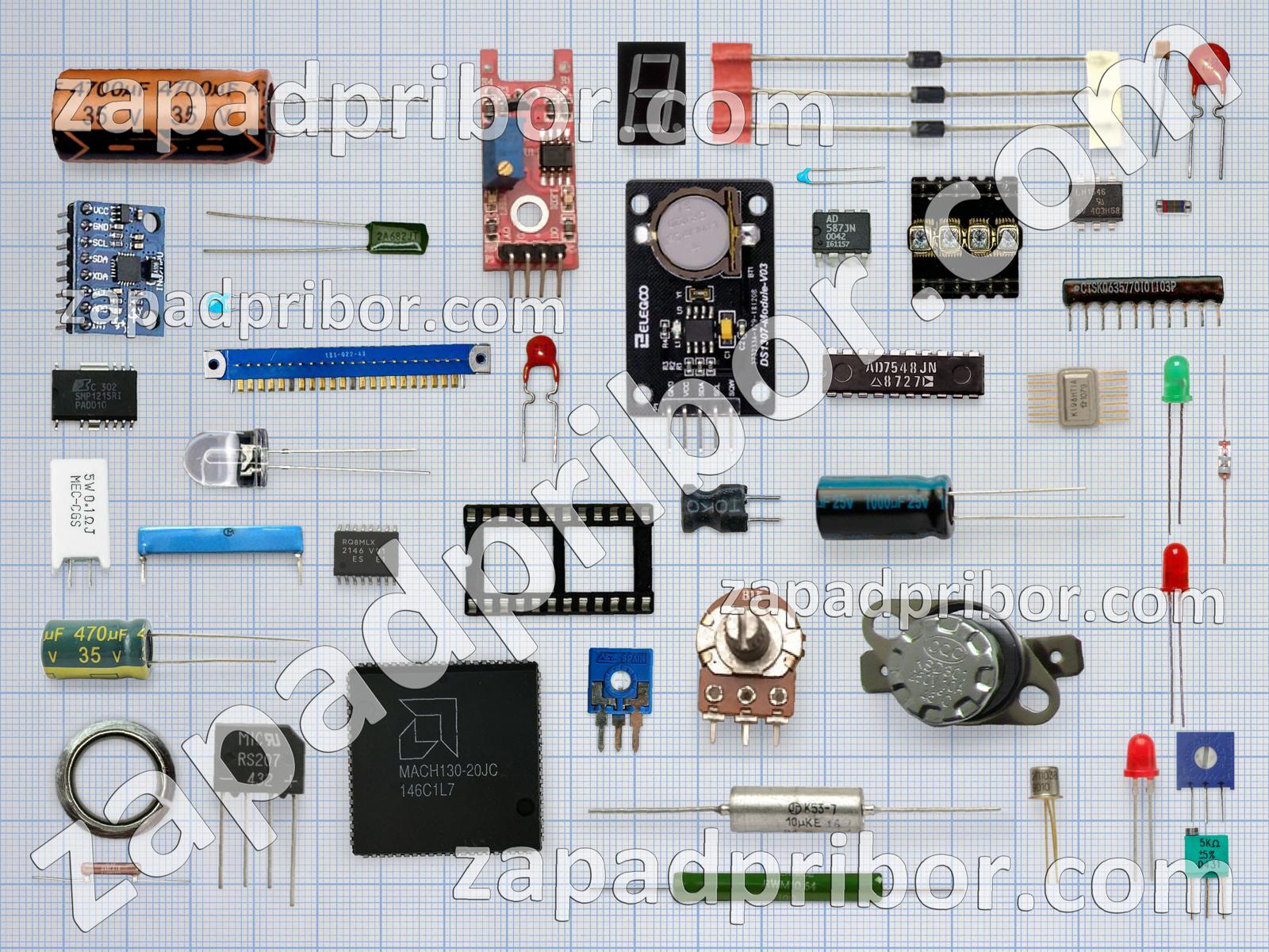 Кроме этих радиодеталей на нашем сайте вы сможете найти большой перечень компонентов. Осуществляйте поиск по основным типам радиодеталей таких как переключатель, диод, тиристор, соединитель, усилитель, фотодиод, резистор, кнопка, датчик, тумблер, микросхема, преобразователь, колодки, дроссель, дисплей, диодный мост, контакты, адаптер, разъем, индикатор, экран, резонатор, индуктивность, транзистор, трансформатор, конденсатор, реле, светодиод и другие.