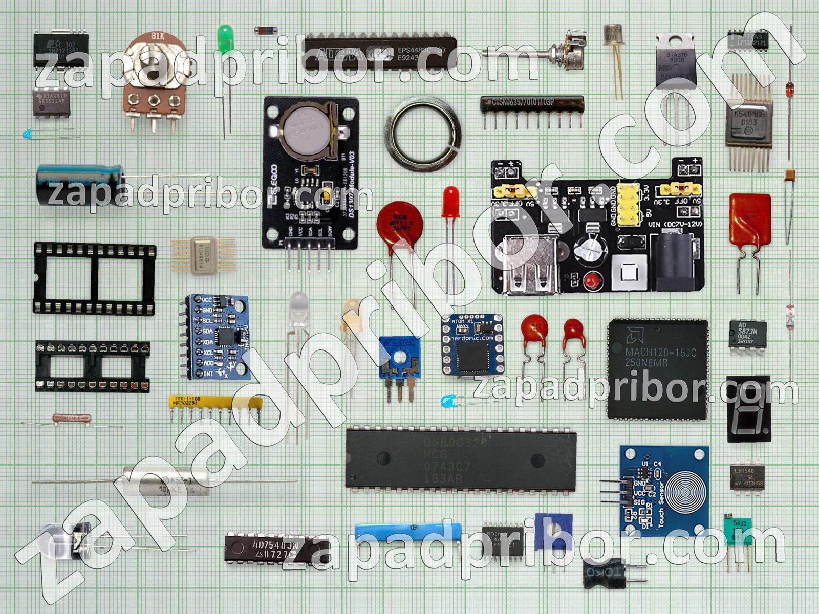 Кроме этих радиодеталей на нашем сайте вы сможете найти большой перечень компонентов. Осуществляйте поиск по основным типам радиодеталей таких как соединитель, преобразователь, тумблер, реле, разъем, колодки, тиристор, адаптер, кнопка, конденсатор, резонатор, индикатор, контакты, дисплей, диодный мост, транзистор, индуктивность, трансформатор, микросхема, фотодиод, резистор, датчик, усилитель, экран, светодиод, диод, переключатель, дроссель и другие.