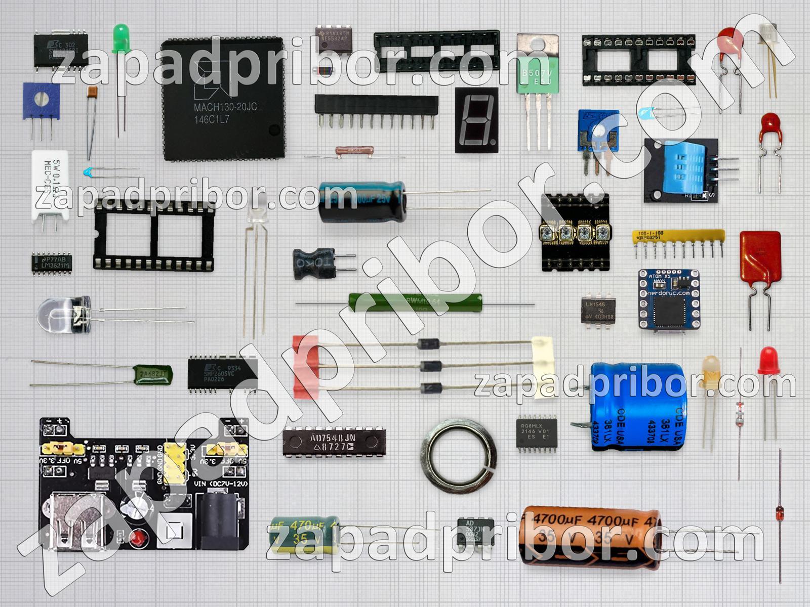 Кроме этих радиодеталей на нашем сайте вы сможете найти большой перечень компонентов. Осуществляйте поиск по основным типам радиодеталей таких как колодки, транзистор, дисплей, преобразователь, индикатор, адаптер, тиристор, индуктивность, кнопка, реле, микросхема, резистор, фотодиод, резонатор, соединитель, усилитель, контакты, диодный мост, диод, тумблер, светодиод, датчик, разъем, переключатель, экран, трансформатор, конденсатор, дроссель и другие.