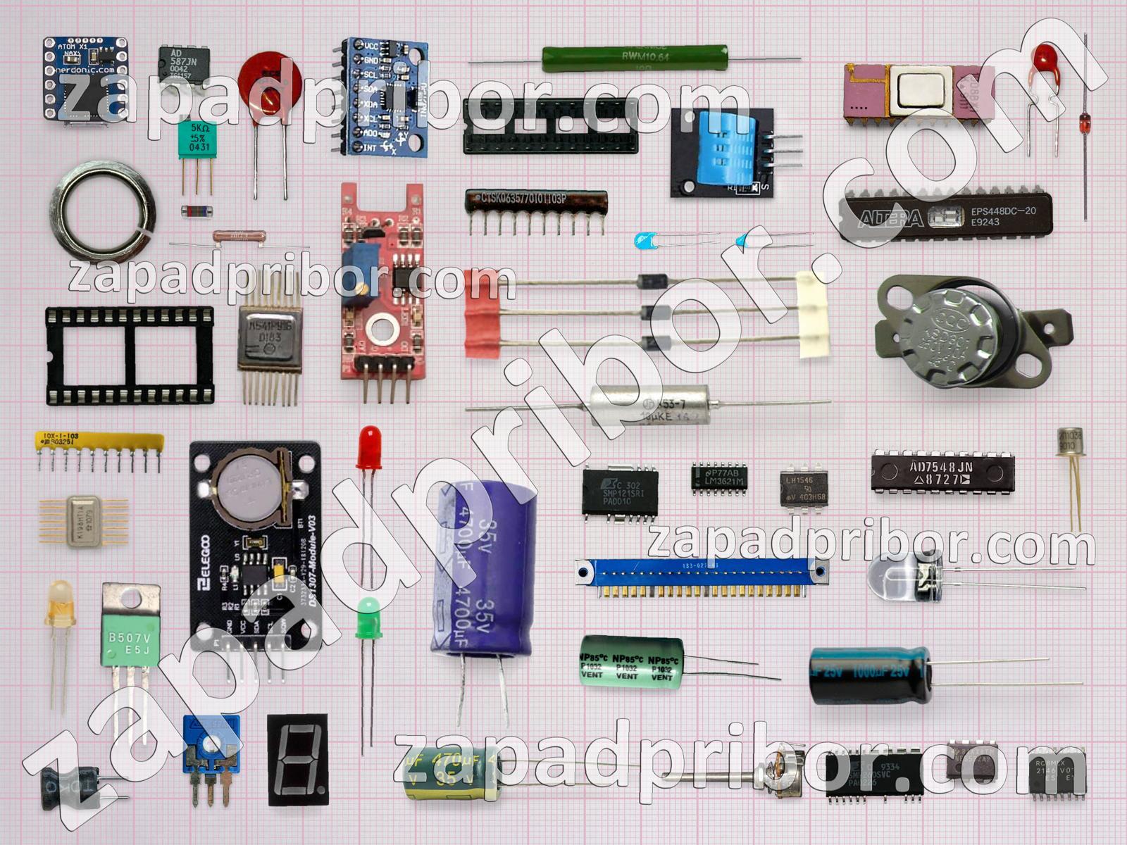 Кроме этих радиодеталей на нашем сайте вы сможете найти большой перечень компонентов. Осуществляйте поиск по основным типам радиодеталей таких как тумблер, диодный мост, адаптер, дроссель, контакты, колодки, усилитель, тиристор, диод, соединитель, кнопка, резистор, разъем, трансформатор, резонатор, индуктивность, реле, преобразователь, дисплей, датчик, индикатор, переключатель, светодиод, фотодиод, транзистор, конденсатор, микросхема, экран и другие.