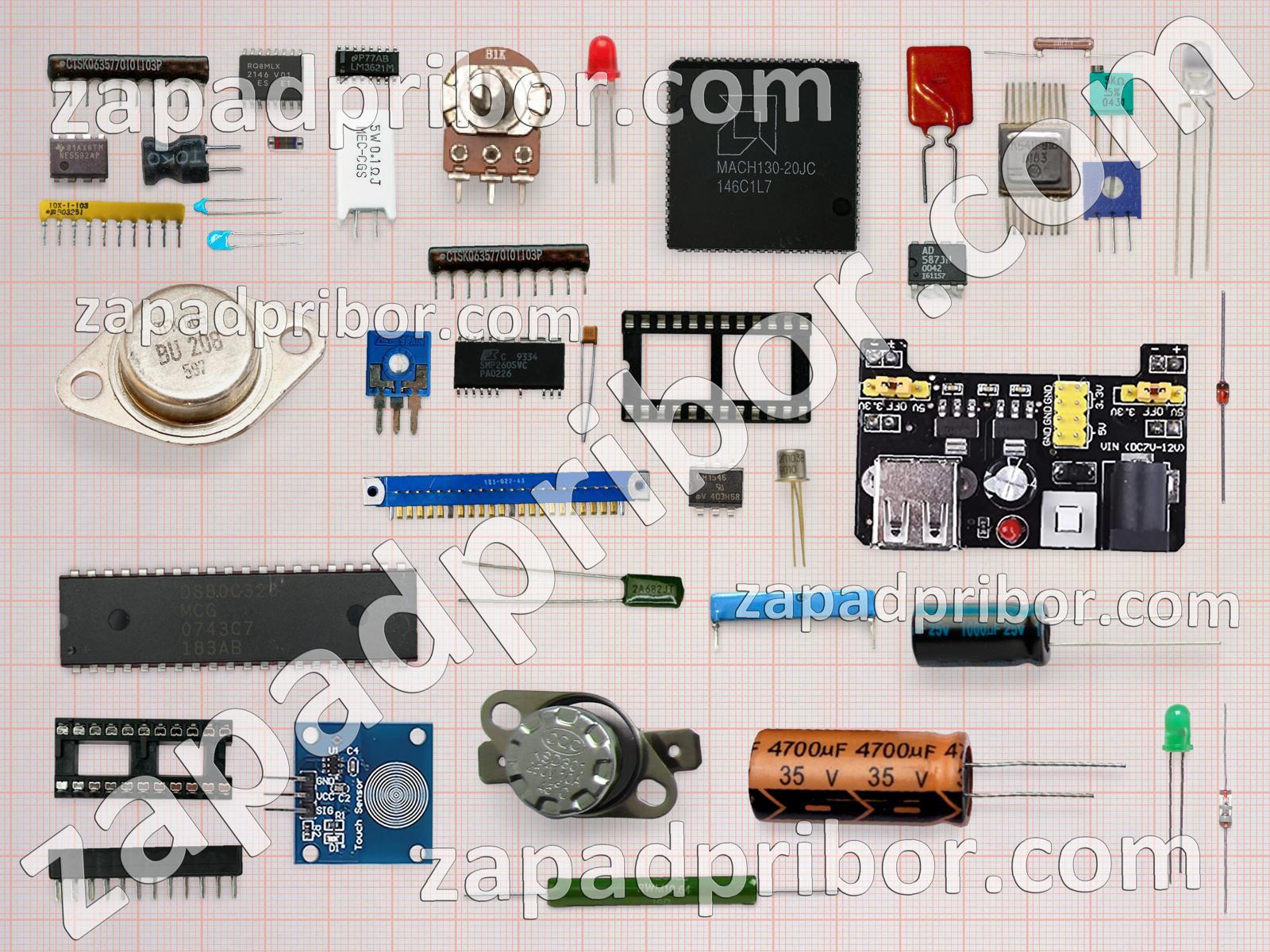 Кроме этих радиодеталей на нашем сайте вы сможете найти большой перечень компонентов. Осуществляйте поиск по основным типам радиодеталей таких как экран, светодиод, разъем, резистор, трансформатор, фотодиод, индуктивность, резонатор, датчик, микросхема, соединитель, тиристор, усилитель, контакты, реле, дроссель, кнопка, диодный мост, дисплей, индикатор, транзистор, конденсатор, переключатель, адаптер, тумблер, преобразователь, диод, колодки и другие.