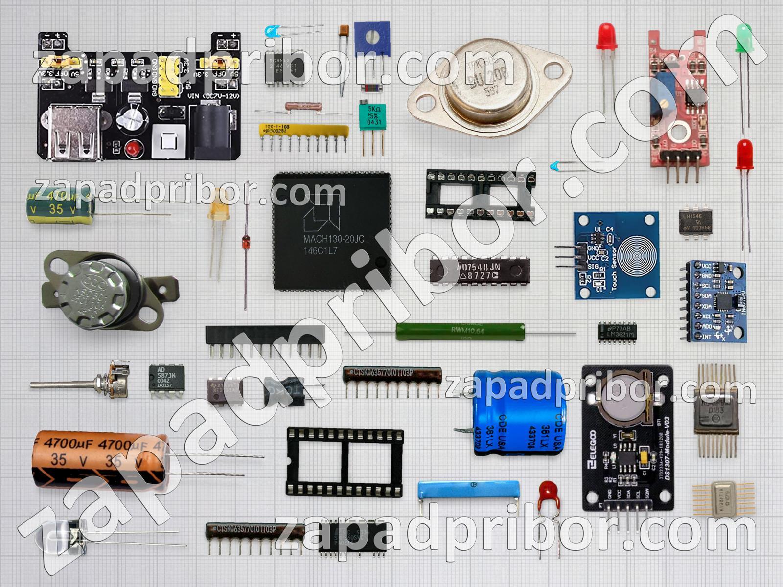 Кроме этих радиодеталей на нашем сайте вы сможете найти большой перечень компонентов. Осуществляйте поиск по основным типам радиодеталей таких как тумблер, диод, датчик, преобразователь, колодки, транзистор, фотодиод, контакты, резистор, реле, переключатель, диодный мост, дроссель, кнопка, конденсатор, соединитель, усилитель, микросхема, разъем, дисплей, резонатор, индуктивность, трансформатор, индикатор, светодиод, адаптер, экран, тиристор и другие.