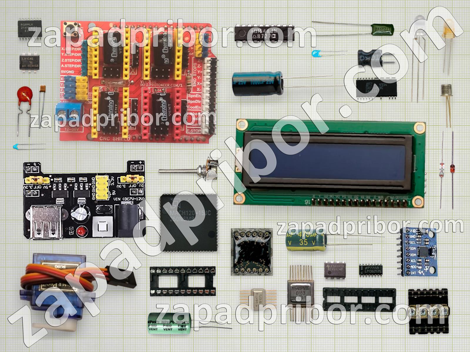 Кроме этих радиодеталей на нашем сайте вы сможете найти большой перечень компонентов. Осуществляйте поиск по основным типам радиодеталей таких как колодки, кнопка, контакты, резонатор, соединитель, транзистор, разъем, усилитель, экран, тумблер, реле, индикатор, индуктивность, тиристор, преобразователь, фотодиод, резистор, микросхема, светодиод, датчик, трансформатор, диод, конденсатор, переключатель, диодный мост, дроссель, адаптер, дисплей и другие.