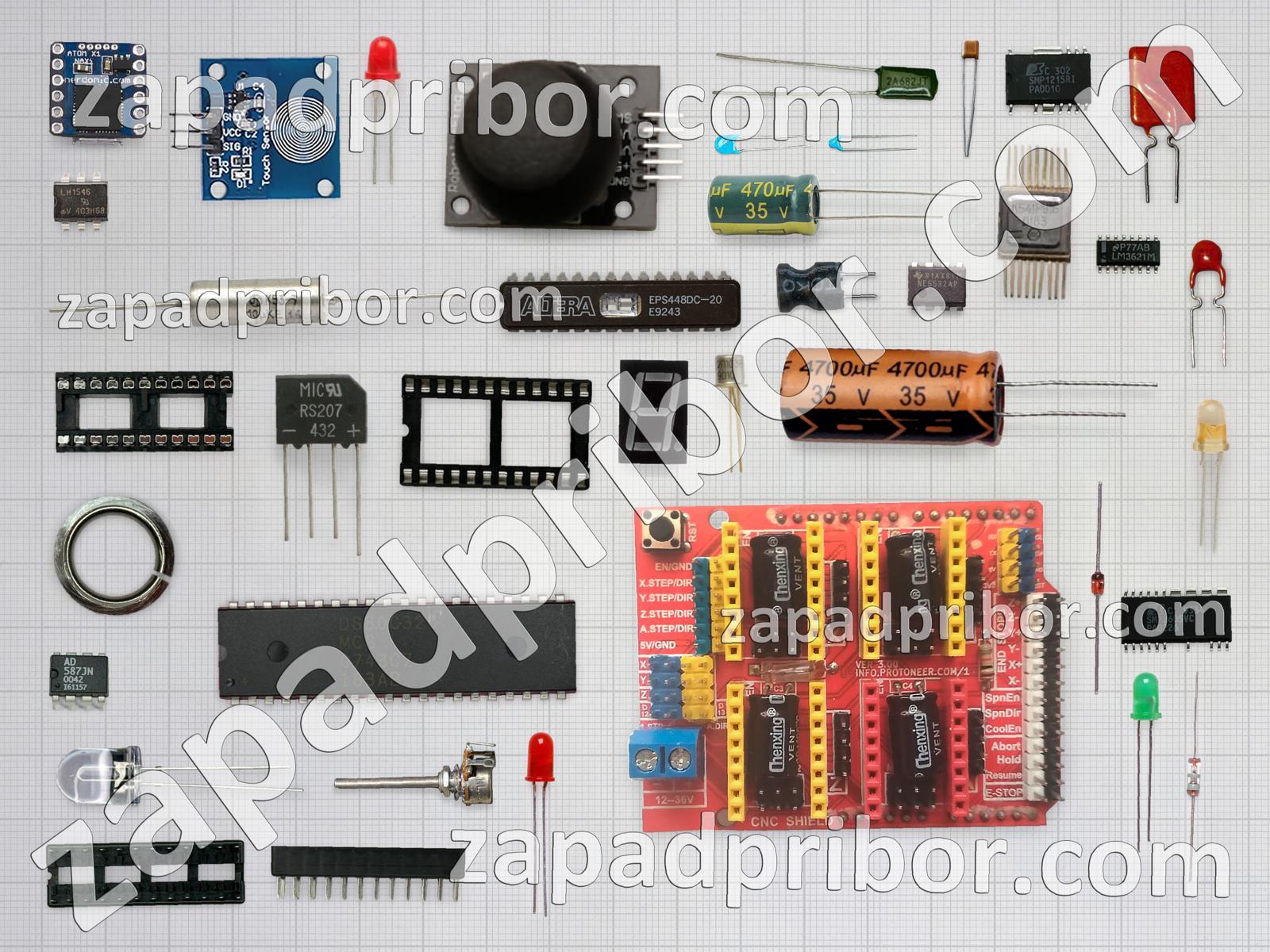Кроме этих радиодеталей на нашем сайте вы сможете найти большой перечень компонентов. Осуществляйте поиск по основным типам радиодеталей таких как резистор, трансформатор, кнопка, светодиод, резонатор, разъем, дроссель, дисплей, экран, фотодиод, тумблер, переключатель, индикатор, тиристор, диод, колодки, микросхема, индуктивность, конденсатор, контакты, соединитель, транзистор, реле, диодный мост, усилитель, датчик, адаптер, преобразователь и другие.