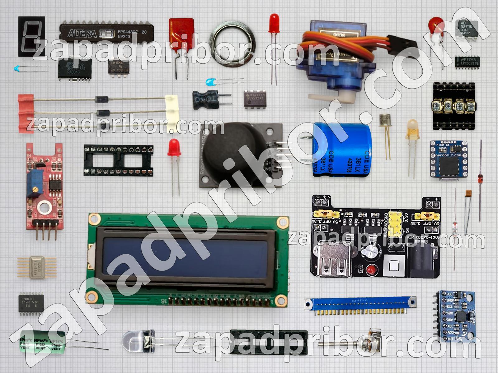 Кроме этих радиодеталей на нашем сайте вы сможете найти большой перечень компонентов. Осуществляйте поиск по основным типам радиодеталей таких как фотодиод, тиристор, резистор, резонатор, конденсатор, трансформатор, тумблер, светодиод, адаптер, усилитель, диод, преобразователь, переключатель, разъем, дроссель, микросхема, реле, датчик, соединитель, кнопка, дисплей, транзистор, контакты, колодки, диодный мост, индикатор, индуктивность, экран и другие.