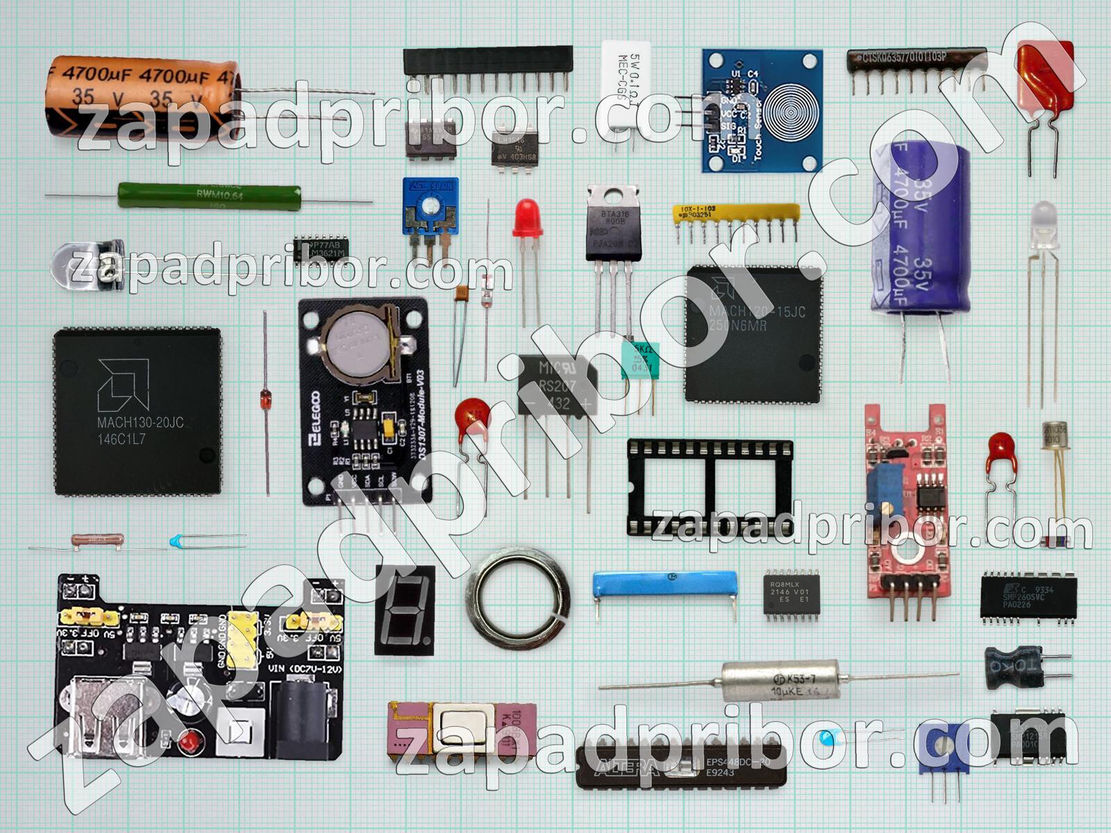 Кроме этих радиодеталей на нашем сайте вы сможете найти большой перечень компонентов. Осуществляйте поиск по основным типам радиодеталей таких как соединитель, фотодиод, тиристор, резистор, переключатель, разъем, тумблер, индикатор, конденсатор, кнопка, дисплей, контакты, индуктивность, диодный мост, колодки, транзистор, диод, трансформатор, дроссель, адаптер, датчик, преобразователь, экран, микросхема, светодиод, резонатор, усилитель, реле и другие.
