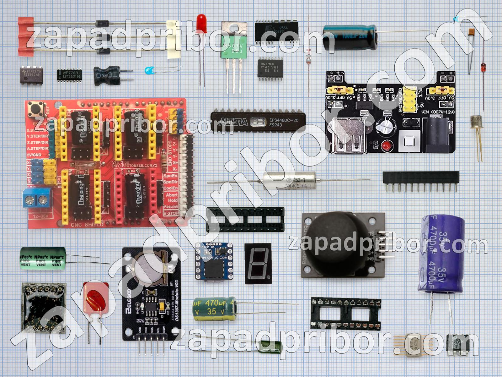 Кроме этих радиодеталей на нашем сайте вы сможете найти большой перечень компонентов. Осуществляйте поиск по основным типам радиодеталей таких как диод, трансформатор, разъем, датчик, дроссель, тумблер, светодиод, дисплей, микросхема, кнопка, тиристор, преобразователь, резонатор, транзистор, контакты, переключатель, индуктивность, резистор, реле, конденсатор, экран, усилитель, колодки, адаптер, фотодиод, диодный мост, соединитель, индикатор и другие.