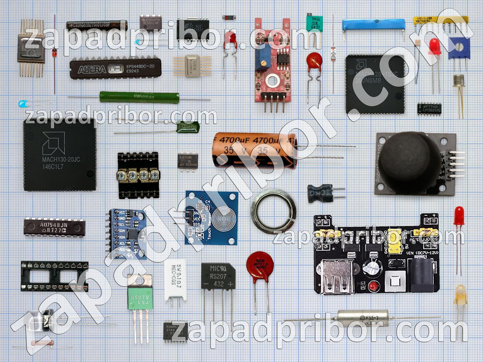 Кроме этих радиодеталей на нашем сайте вы сможете найти большой перечень компонентов. Осуществляйте поиск по основным типам радиодеталей таких как реле, соединитель, адаптер, колодки, экран, кнопка, резонатор, тиристор, дисплей, разъем, светодиод, датчик, индуктивность, транзистор, диодный мост, диод, микросхема, переключатель, преобразователь, резистор, контакты, трансформатор, индикатор, дроссель, конденсатор, тумблер, усилитель, фотодиод и другие.