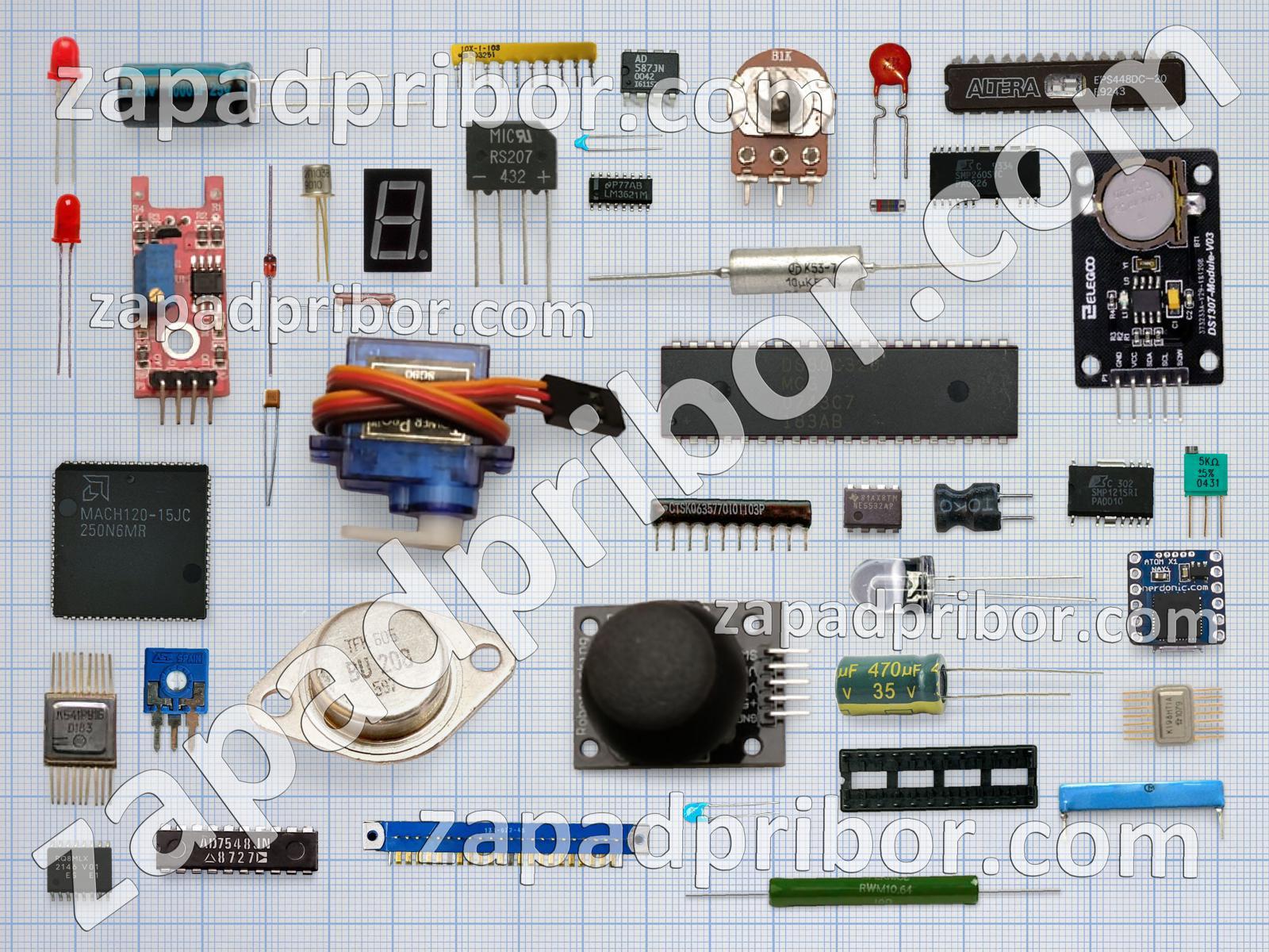 Кроме этих радиодеталей на нашем сайте вы сможете найти большой перечень компонентов. Осуществляйте поиск по основным типам радиодеталей таких как резонатор, дисплей, индикатор, усилитель, соединитель, фотодиод, индуктивность, колодки, экран, диод, преобразователь, светодиод, дроссель, тиристор, конденсатор, трансформатор, кнопка, транзистор, диодный мост, резистор, тумблер, датчик, контакты, микросхема, реле, адаптер, переключатель, разъем и другие.