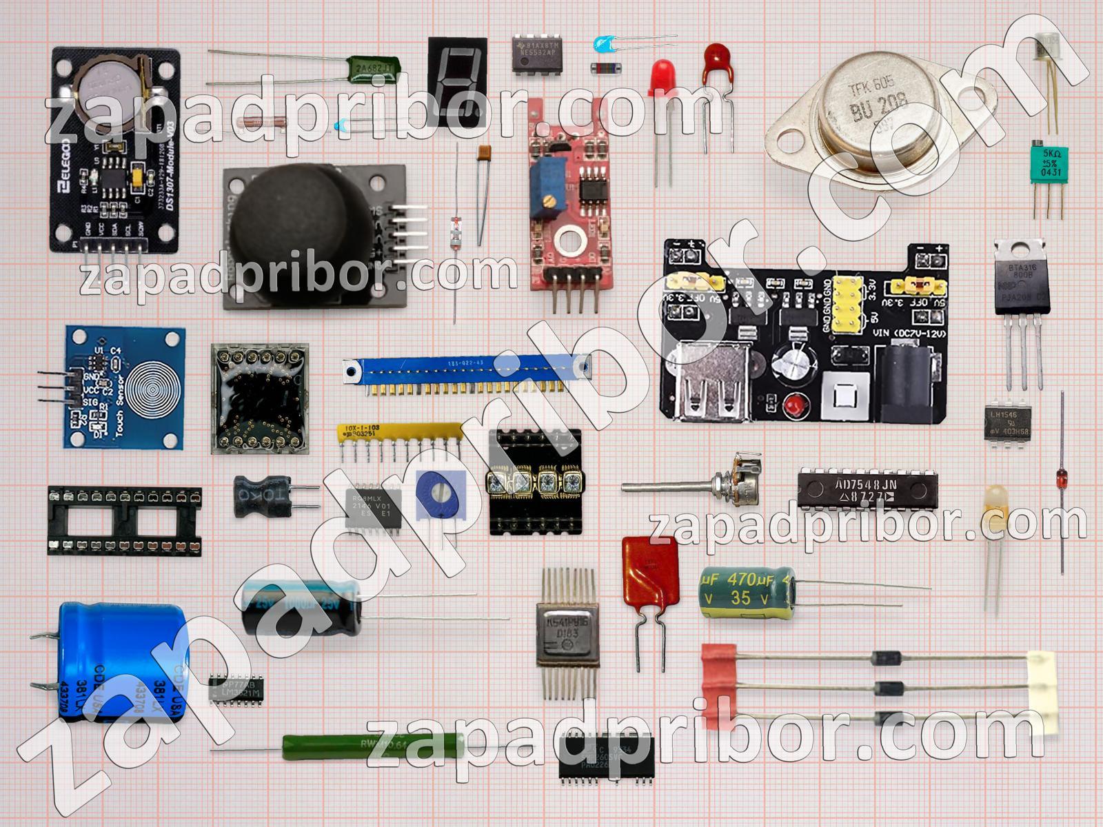 Кроме этих радиодеталей на нашем сайте вы сможете найти большой перечень компонентов. Осуществляйте поиск по основным типам радиодеталей таких как контакты, датчик, соединитель, реле, фотодиод, диодный мост, тиристор, микросхема, дисплей, преобразователь, резистор, тумблер, дроссель, переключатель, экран, индуктивность, резонатор, разъем, транзистор, усилитель, диод, трансформатор, индикатор, кнопка, светодиод, конденсатор, адаптер, колодки и другие.