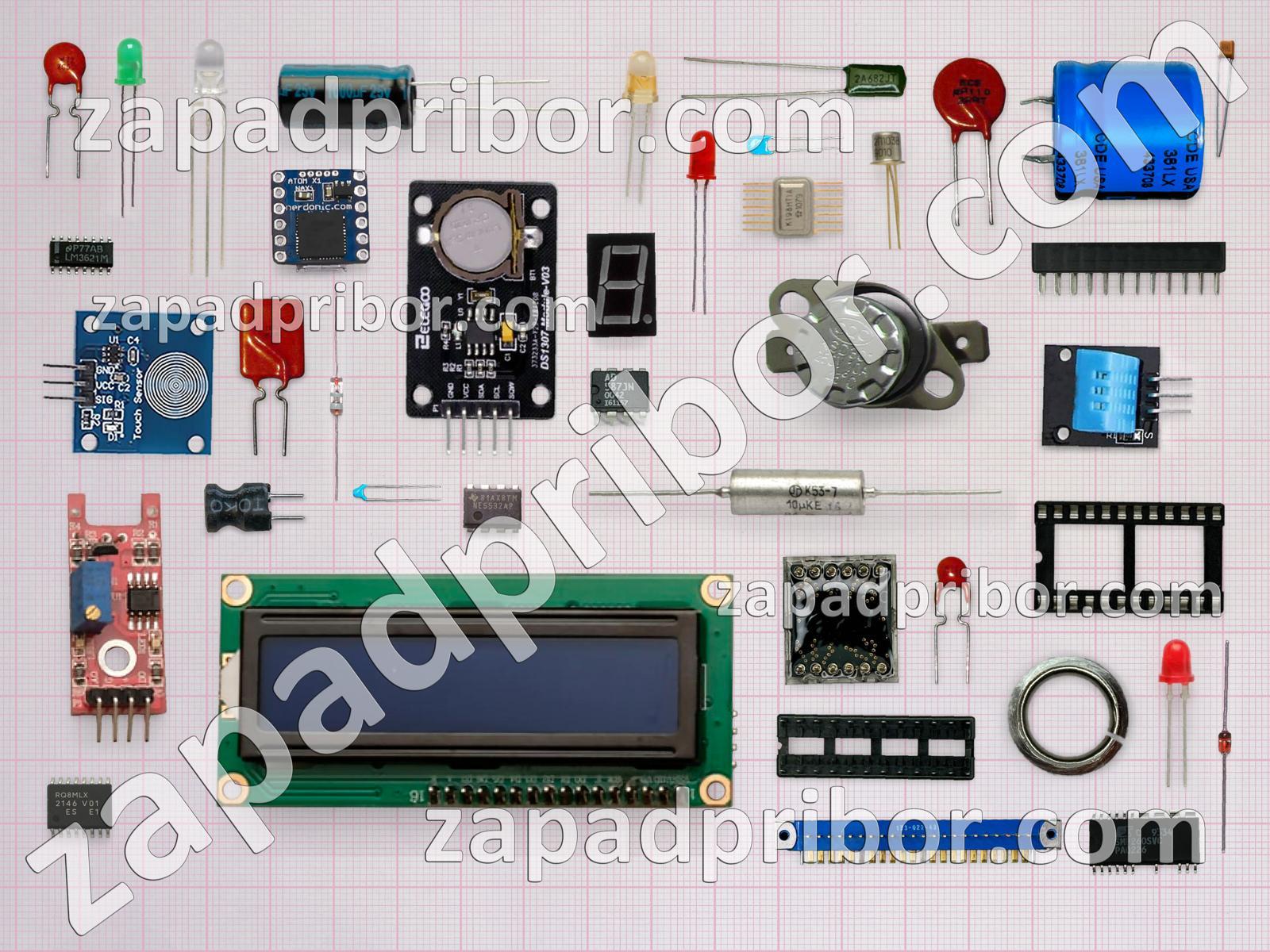 Кроме этих радиодеталей на нашем сайте вы сможете найти большой перечень компонентов. Осуществляйте поиск по основным типам радиодеталей таких как тиристор, адаптер, реле, фотодиод, дроссель, кнопка, преобразователь, датчик, индикатор, микросхема, светодиод, индуктивность, конденсатор, соединитель, контакты, трансформатор, диодный мост, дисплей, переключатель, диод, резистор, экран, тумблер, колодки, усилитель, транзистор, резонатор, разъем и другие.