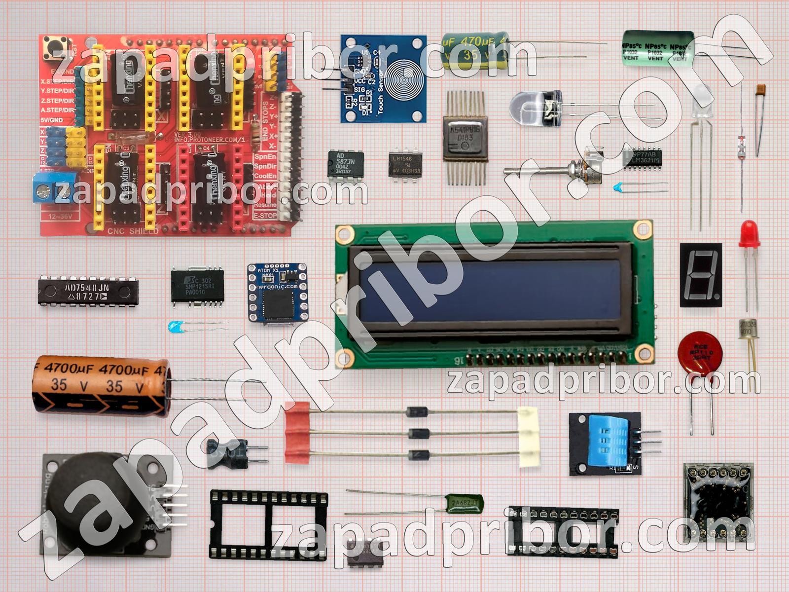 Кроме этих радиодеталей на нашем сайте вы сможете найти большой перечень компонентов. Осуществляйте поиск по основным типам радиодеталей таких как тиристор, адаптер, реле, индикатор, разъем, диодный мост, кнопка, усилитель, светодиод, резонатор, колодки, тумблер, датчик, дисплей, соединитель, диод, микросхема, контакты, транзистор, экран, резистор, фотодиод, индуктивность, переключатель, конденсатор, преобразователь, трансформатор, дроссель и другие.