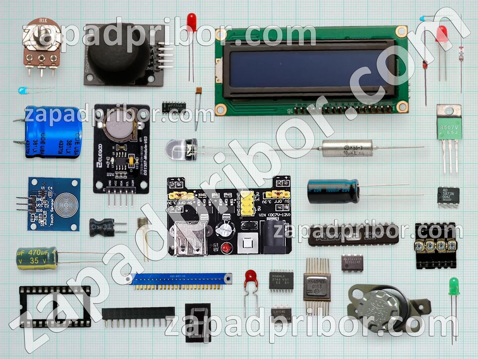 Кроме этих радиодеталей на нашем сайте вы сможете найти большой перечень компонентов. Осуществляйте поиск по основным типам радиодеталей таких как соединитель, диод, датчик, тумблер, преобразователь, усилитель, экран, конденсатор, адаптер, разъем, фотодиод, кнопка, транзистор, переключатель, светодиод, тиристор, контакты, трансформатор, индуктивность, микросхема, дисплей, дроссель, колодки, резонатор, реле, диодный мост, индикатор, резистор и другие.