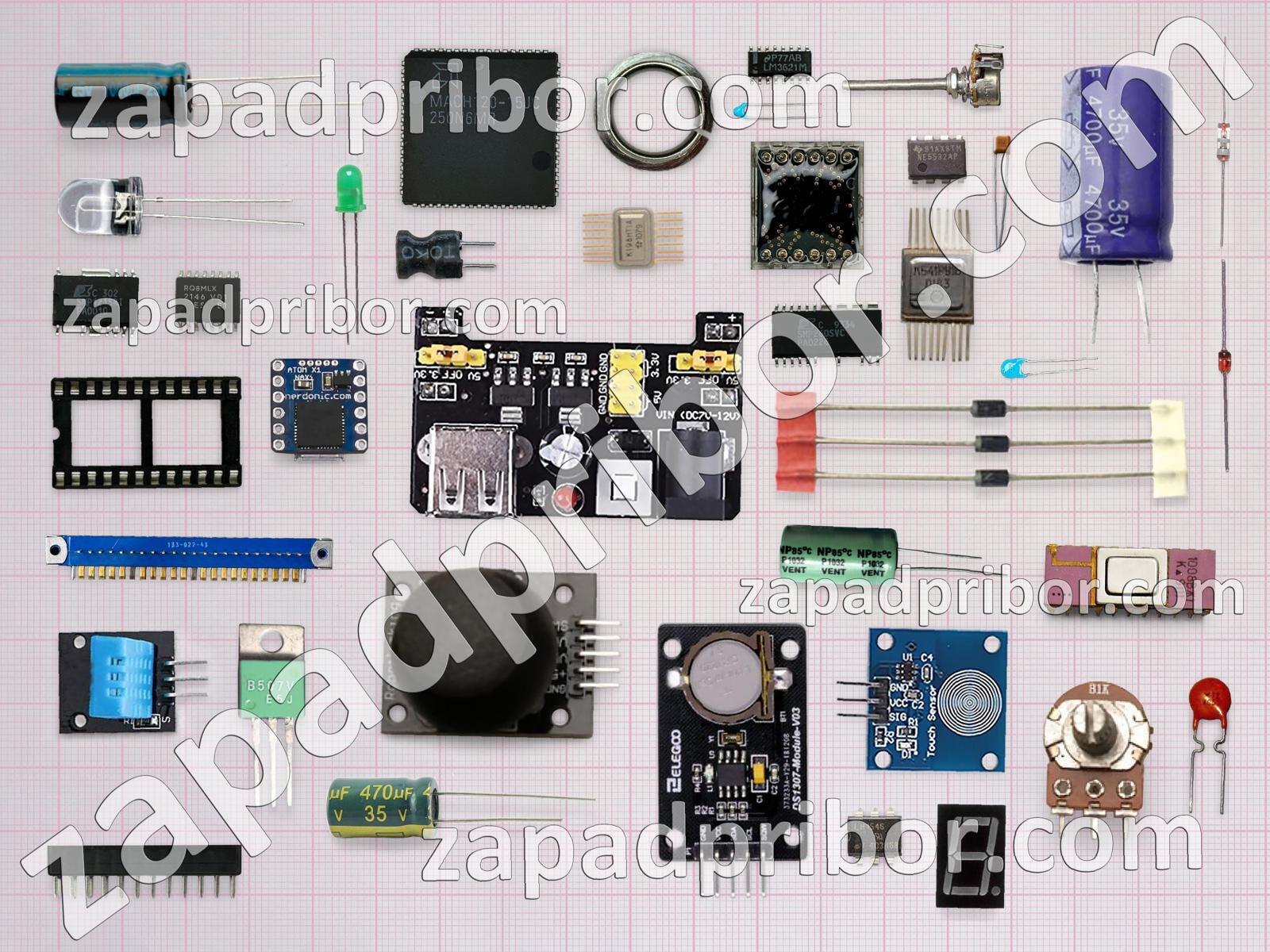 Кроме этих радиодеталей на нашем сайте вы сможете найти большой перечень компонентов. Осуществляйте поиск по основным типам радиодеталей таких как резистор, конденсатор, датчик, усилитель, индуктивность, преобразователь, диод, светодиод, дроссель, трансформатор, индикатор, диодный мост, дисплей, колодки, контакты, экран, резонатор, кнопка, микросхема, тиристор, транзистор, соединитель, реле, тумблер, переключатель, разъем, адаптер, фотодиод и другие.