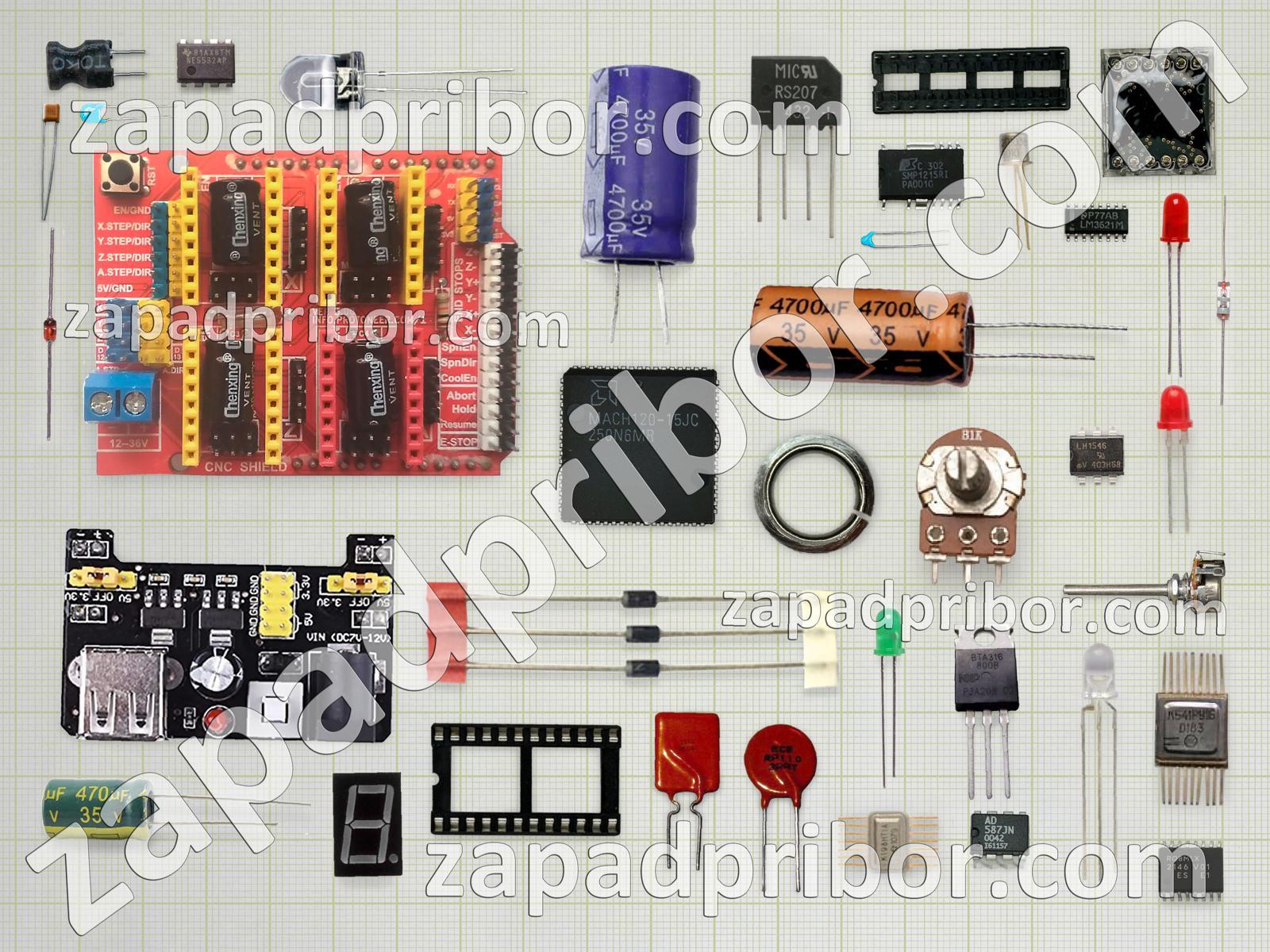 Кроме этих радиодеталей на нашем сайте вы сможете найти большой перечень компонентов. Осуществляйте поиск по основным типам радиодеталей таких как датчик, экран, тумблер, микросхема, разъем, резистор, трансформатор, индикатор, дисплей, индуктивность, конденсатор, кнопка, переключатель, усилитель, диодный мост, светодиод, контакты, резонатор, соединитель, тиристор, транзистор, адаптер, реле, дроссель, фотодиод, преобразователь, колодки, диод и другие.