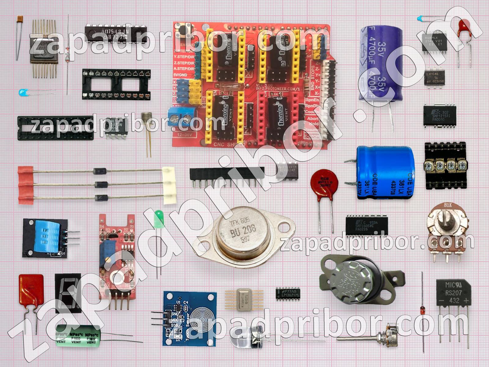Кроме этих радиодеталей на нашем сайте вы сможете найти большой перечень компонентов. Осуществляйте поиск по основным типам радиодеталей таких как микросхема, тумблер, дисплей, индикатор, датчик, переключатель, резонатор, резистор, тиристор, реле, преобразователь, кнопка, светодиод, контакты, усилитель, дроссель, трансформатор, индуктивность, экран, диодный мост, конденсатор, соединитель, диод, колодки, транзистор, фотодиод, разъем, адаптер и другие.