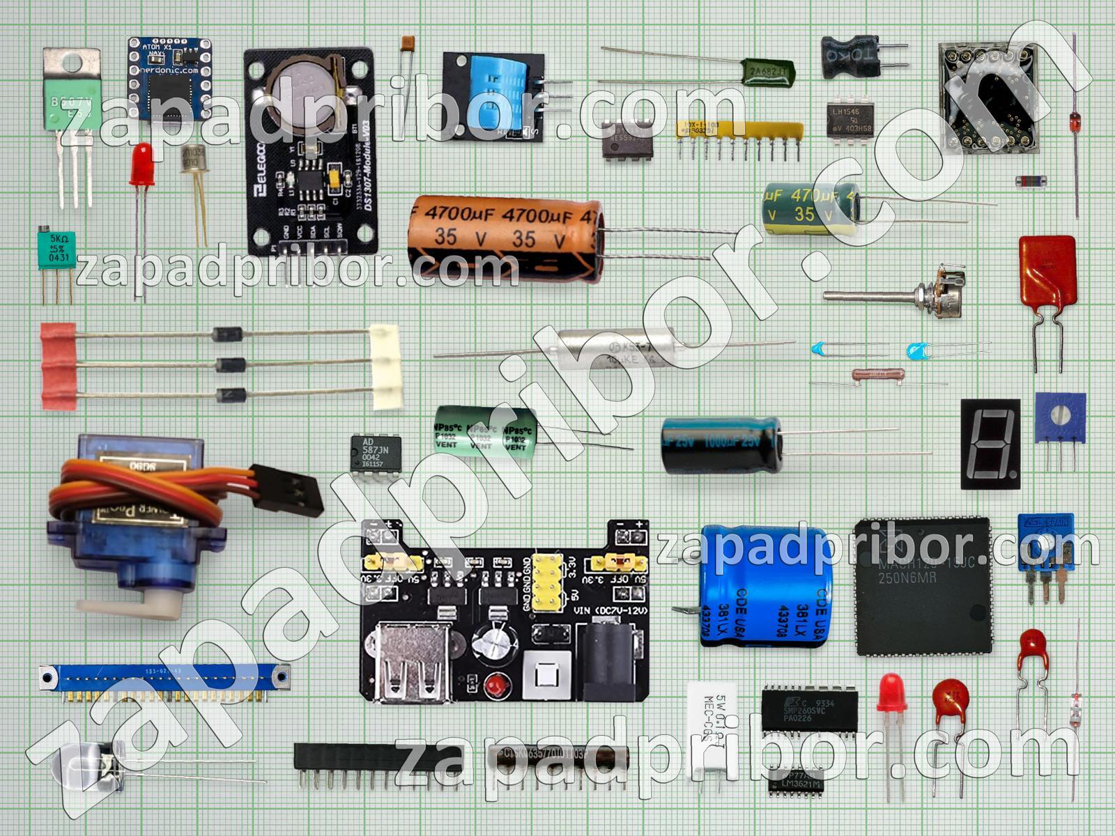 Кроме этих радиодеталей на нашем сайте вы сможете найти большой перечень компонентов. Осуществляйте поиск по основным типам радиодеталей таких как кнопка, адаптер, переключатель, соединитель, разъем, преобразователь, диодный мост, микросхема, резонатор, усилитель, транзистор, колодки, реле, датчик, контакты, трансформатор, индуктивность, дисплей, дроссель, фотодиод, тумблер, диод, экран, тиристор, светодиод, индикатор, конденсатор, резистор и другие.