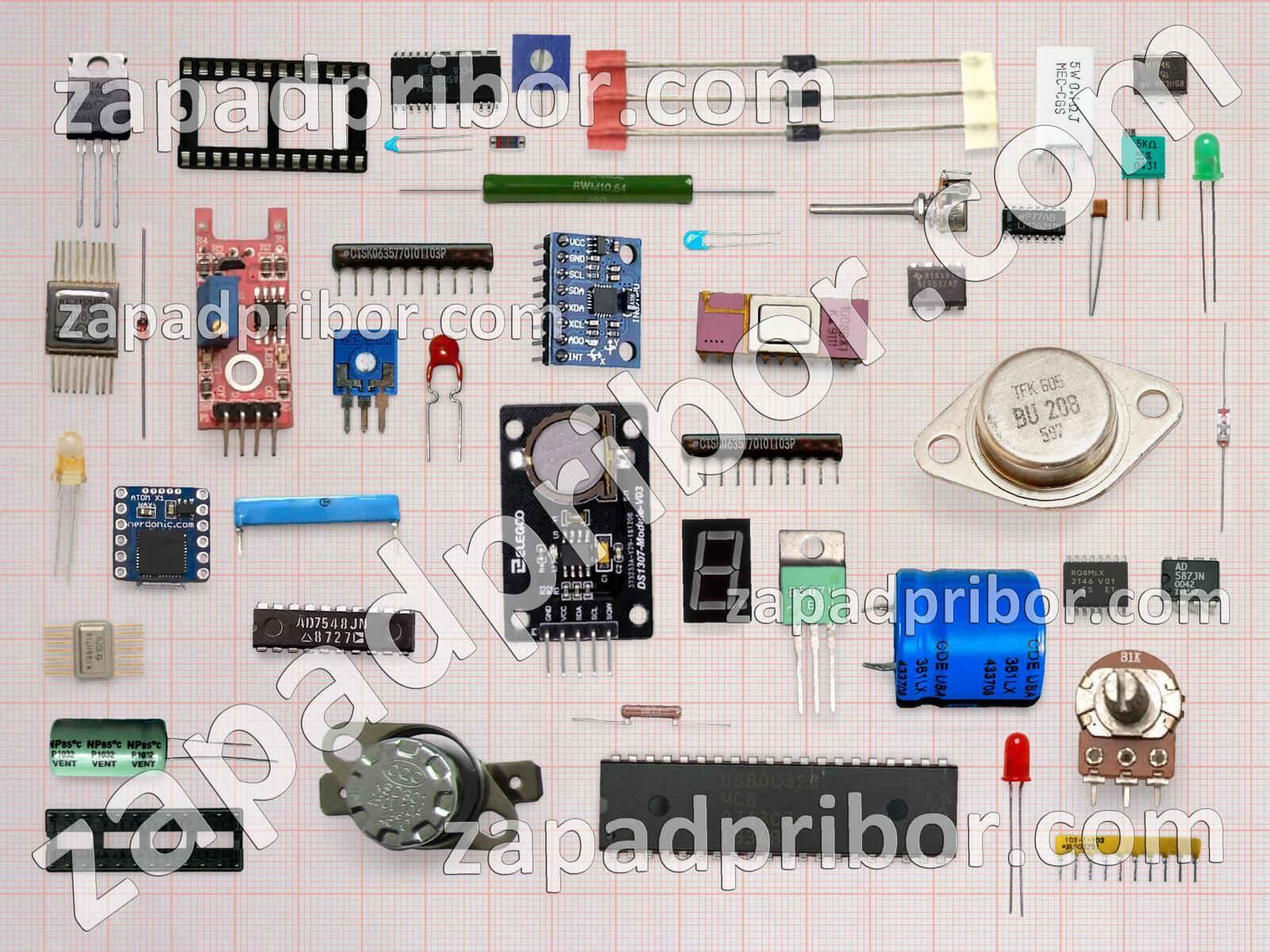 Кроме этих радиодеталей на нашем сайте вы сможете найти большой перечень компонентов. Осуществляйте поиск по основным типам радиодеталей таких как тумблер, индуктивность, адаптер, соединитель, диодный мост, резистор, реле, разъем, колодки, усилитель, индикатор, дисплей, преобразователь, тиристор, кнопка, микросхема, светодиод, дроссель, конденсатор, фотодиод, трансформатор, диод, экран, резонатор, транзистор, датчик, переключатель, контакты и другие.