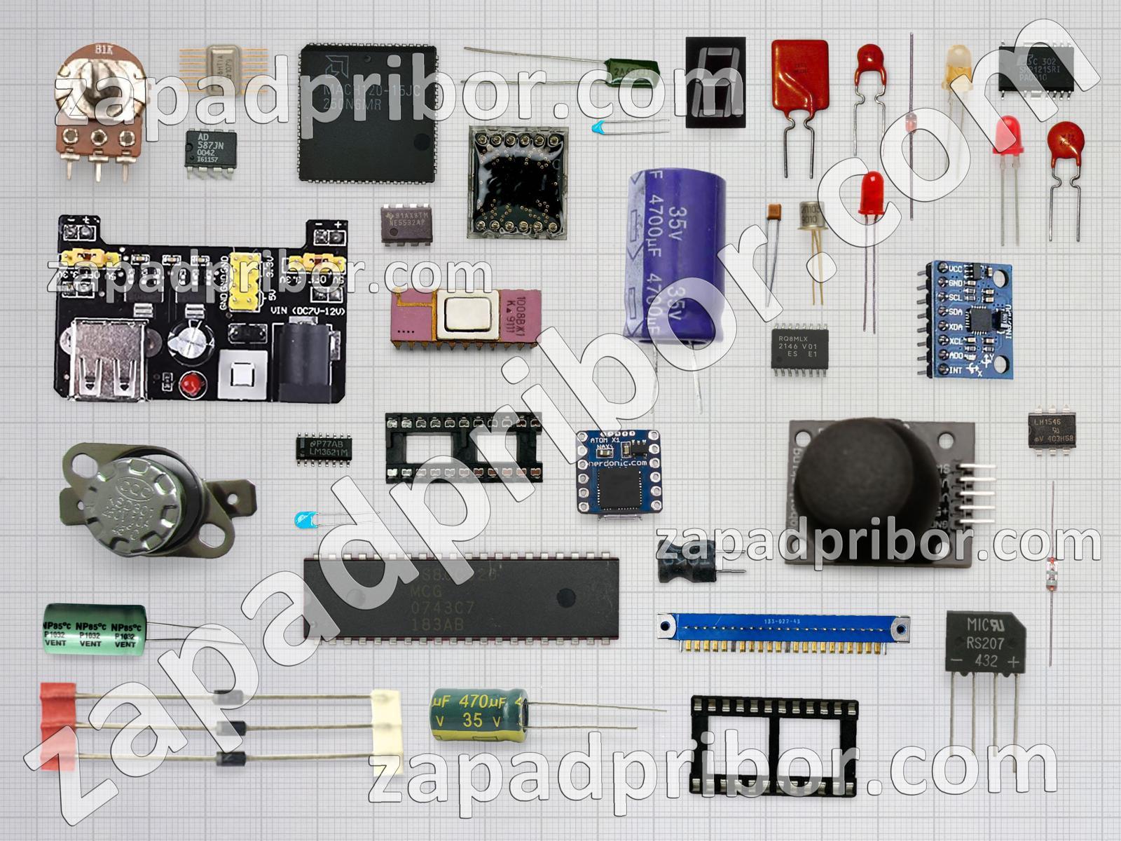 Кроме этих радиодеталей на нашем сайте вы сможете найти большой перечень компонентов. Осуществляйте поиск по основным типам радиодеталей таких как адаптер, транзистор, индикатор, конденсатор, диод, соединитель, разъем, трансформатор, усилитель, светодиод, преобразователь, колодки, фотодиод, дроссель, экран, переключатель, диодный мост, кнопка, микросхема, резистор, тумблер, реле, индуктивность, контакты, резонатор, тиристор, дисплей, датчик и другие.