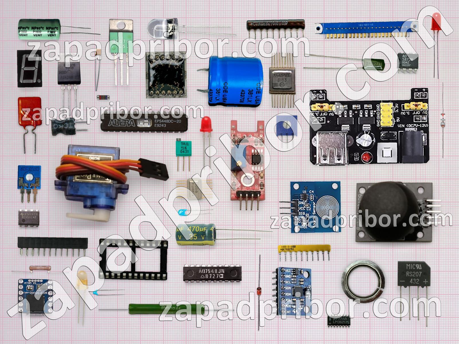 Кроме этих радиодеталей на нашем сайте вы сможете найти большой перечень компонентов. Осуществляйте поиск по основным типам радиодеталей таких как реле, микросхема, разъем, кнопка, колодки, адаптер, экран, диодный мост, переключатель, трансформатор, диод, тумблер, индикатор, соединитель, транзистор, дисплей, дроссель, датчик, резонатор, контакты, усилитель, индуктивность, светодиод, резистор, конденсатор, фотодиод, преобразователь, тиристор и другие.