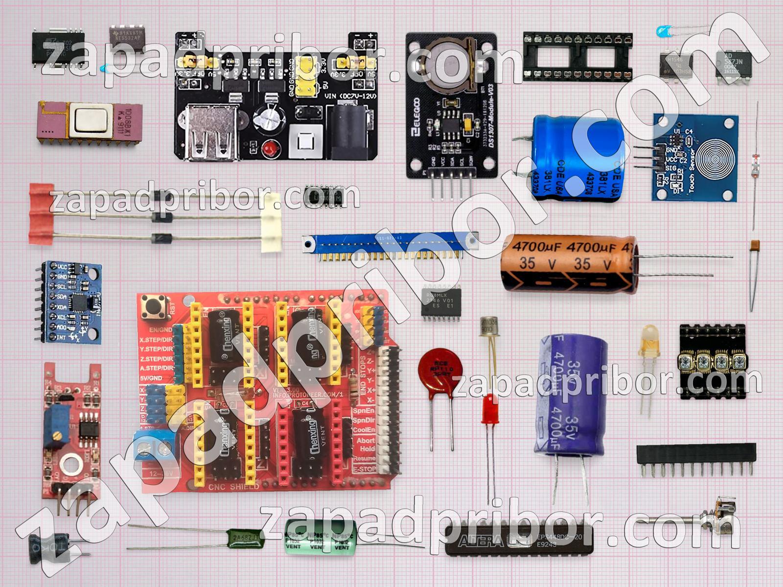 Кроме этих радиодеталей на нашем сайте вы сможете найти большой перечень компонентов. Осуществляйте поиск по основным типам радиодеталей таких как соединитель, разъем, дисплей, кнопка, резонатор, микросхема, тумблер, дроссель, контакты, тиристор, диод, резистор, реле, светодиод, конденсатор, трансформатор, усилитель, преобразователь, индуктивность, колодки, транзистор, датчик, переключатель, индикатор, фотодиод, экран, адаптер, диодный мост и другие.