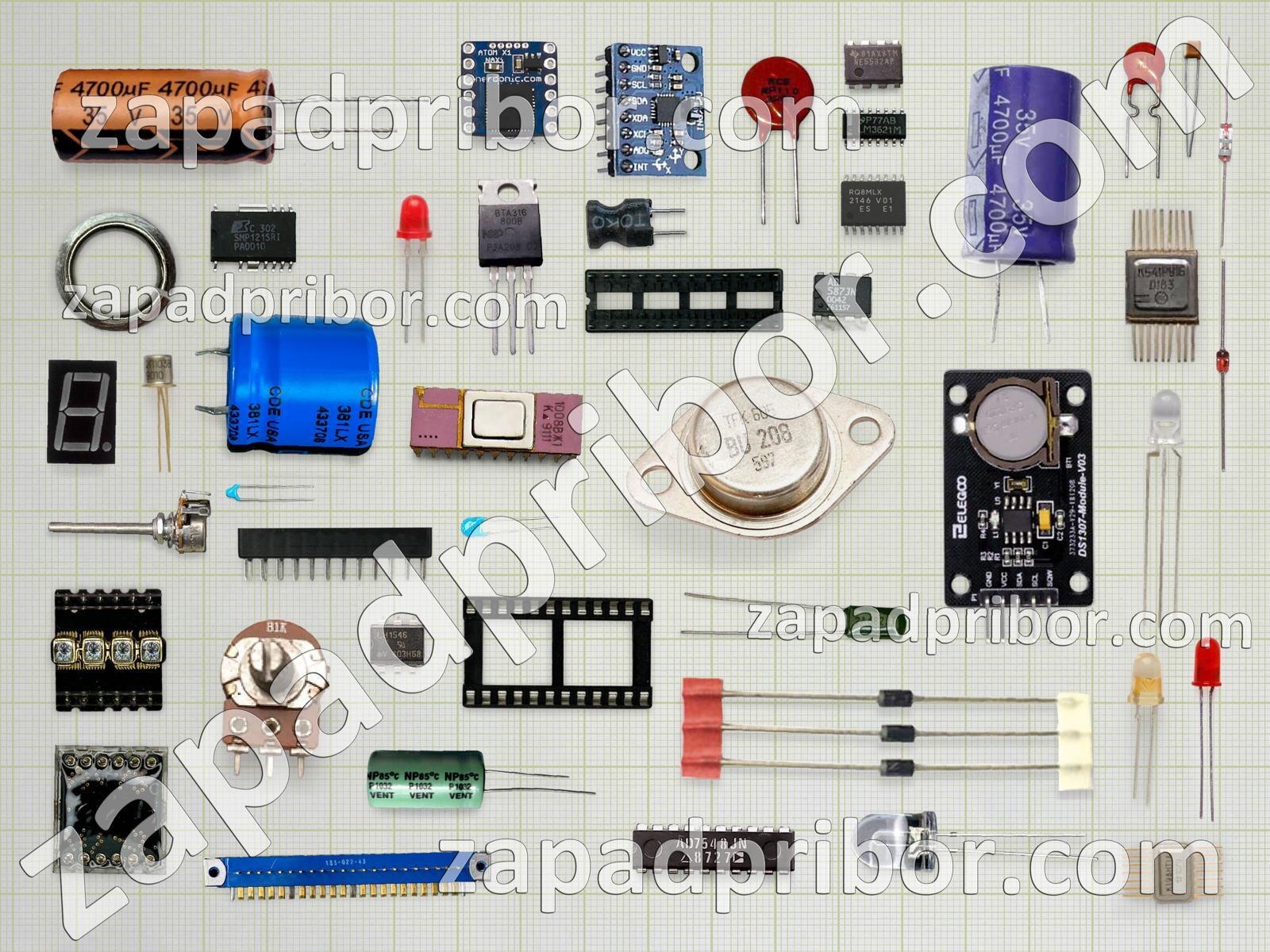 Кроме этих радиодеталей на нашем сайте вы сможете найти большой перечень компонентов. Осуществляйте поиск по основным типам радиодеталей таких как диод, контакты, фотодиод, адаптер, соединитель, датчик, колодки, индуктивность, тумблер, светодиод, реле, кнопка, конденсатор, микросхема, дисплей, тиристор, усилитель, резистор, переключатель, разъем, дроссель, преобразователь, индикатор, экран, трансформатор, транзистор, диодный мост, резонатор и другие.