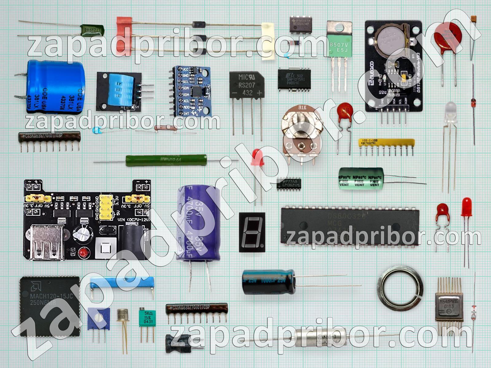Кроме этих радиодеталей на нашем сайте вы сможете найти большой перечень компонентов. Осуществляйте поиск по основным типам радиодеталей таких как датчик, экран, индикатор, дисплей, кнопка, преобразователь, резонатор, колодки, тумблер, трансформатор, адаптер, светодиод, микросхема, транзистор, усилитель, соединитель, тиристор, индуктивность, переключатель, разъем, реле, диод, конденсатор, фотодиод, резистор, дроссель, контакты, диодный мост и другие.