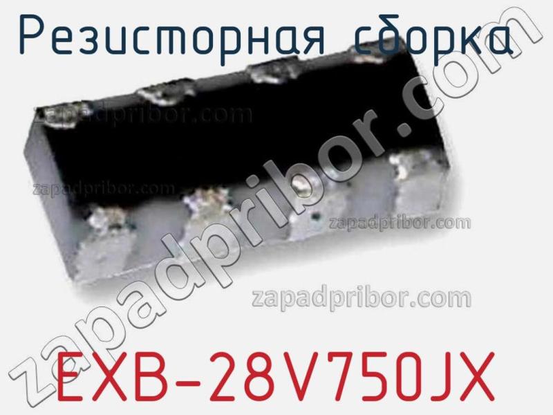 Основные характеристики резисторной сборки EXB-28V750JX : EXB-28V750JXResistors/ Resistor Networks, Arrays75 Ohm В±5% 62.5mW Power Per Element Isolated 4 Resistor Network/Array В±200ppm/В°C 0804, Convex, Long Side Terminals