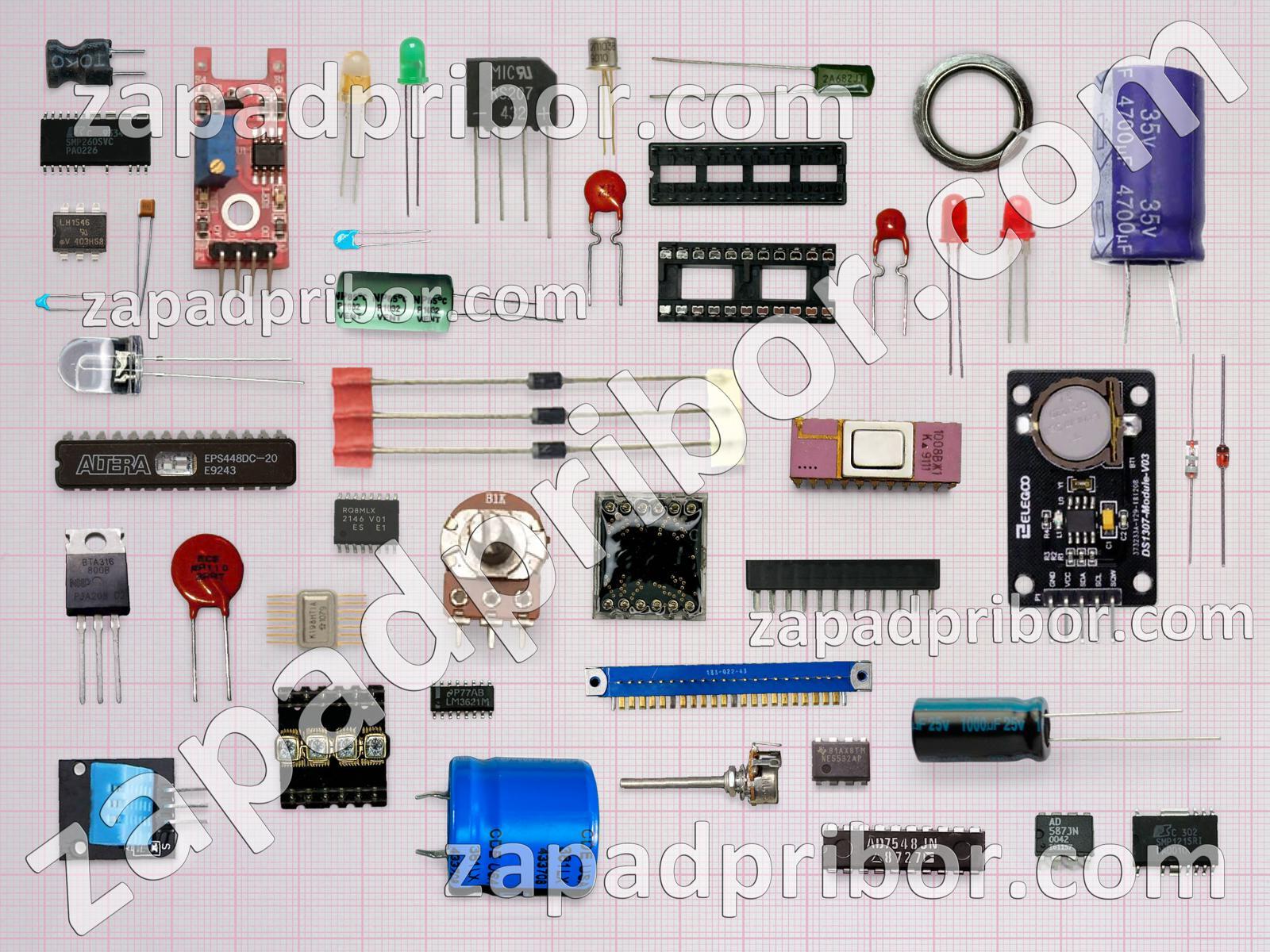 Кроме этих радиодеталей на нашем сайте вы сможете найти большой перечень компонентов. Осуществляйте поиск по основным типам радиодеталей таких как резистор, разъем, дроссель, светодиод, преобразователь, соединитель, тиристор, адаптер, индуктивность, колодки, диодный мост, трансформатор, дисплей, переключатель, контакты, тумблер, фотодиод, кнопка, экран, резонатор, датчик, диод, конденсатор, реле, микросхема, индикатор, транзистор, усилитель и другие.