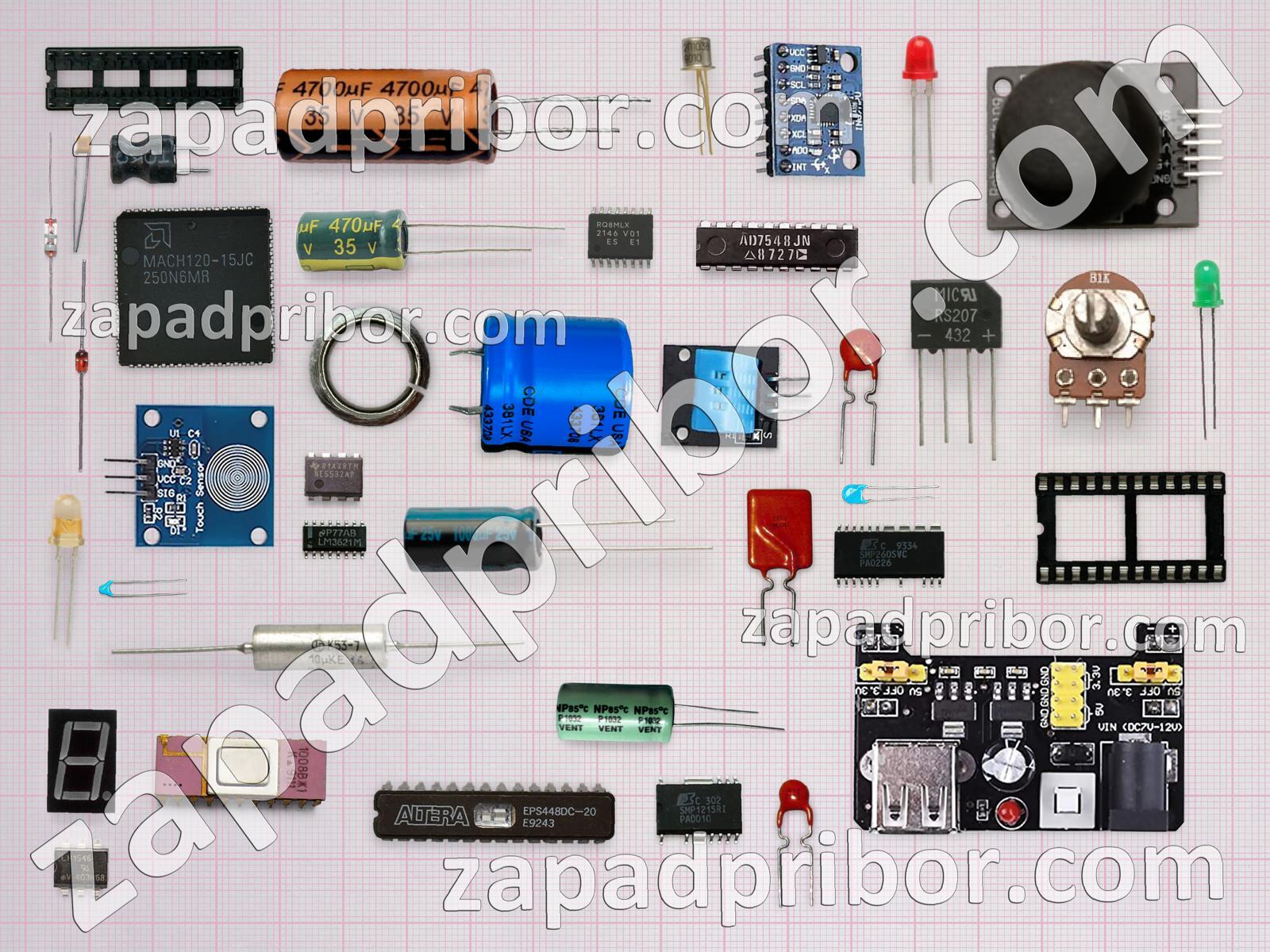 Кроме этих радиодеталей на нашем сайте вы сможете найти большой перечень компонентов. Осуществляйте поиск по основным типам радиодеталей таких как дисплей, тумблер, усилитель, транзистор, соединитель, резонатор, экран, колодки, датчик, индикатор, кнопка, переключатель, дроссель, индуктивность, конденсатор, диод, контакты, реле, трансформатор, резистор, микросхема, диодный мост, преобразователь, разъем, тиристор, фотодиод, адаптер, светодиод и другие.
