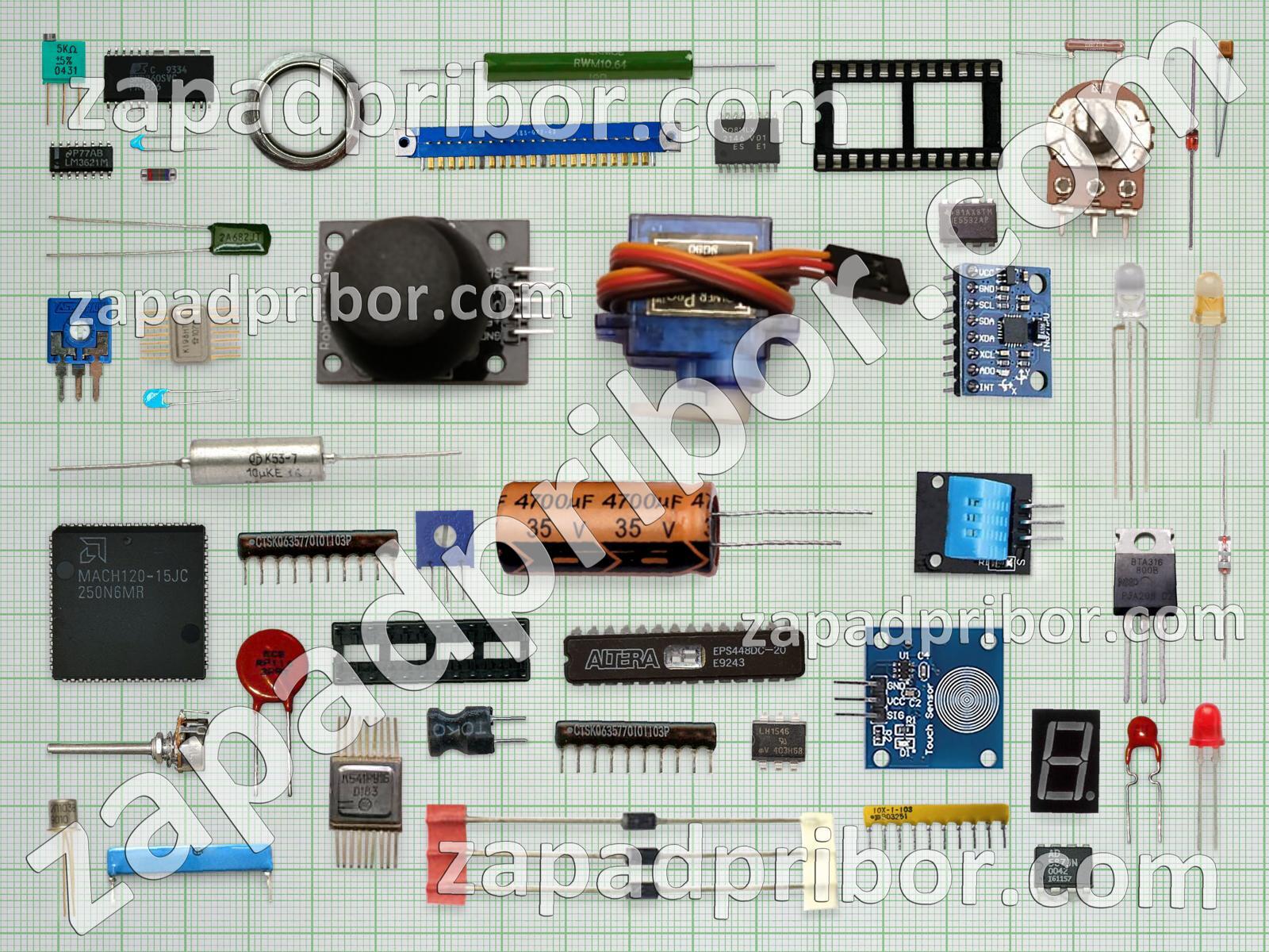 Кроме этих радиодеталей на нашем сайте вы сможете найти большой перечень компонентов. Осуществляйте поиск по основным типам радиодеталей таких как дроссель, индуктивность, микросхема, разъем, реле, датчик, трансформатор, кнопка, дисплей, диод, резистор, фотодиод, тиристор, преобразователь, соединитель, адаптер, переключатель, экран, контакты, конденсатор, усилитель, резонатор, светодиод, колодки, транзистор, тумблер, индикатор, диодный мост и другие.