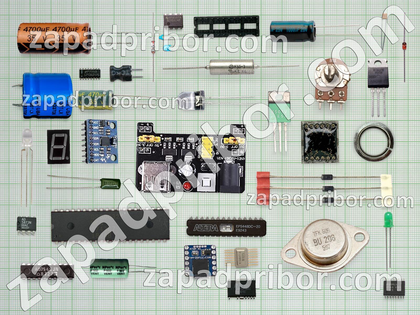 А также на сайте присутствуют более специфические наименования продукции, к примеру, контроллеры освещения, разъемы Audio Jack, Banana, контакторы ТТЕ, подстроечные конденсаторы, дроссели подавления ЭМП, микросхемы для ремонта ноутбуков, сумматоры, резонаторы, фильтры, программируемые таймеры и генераторы, стабилитроны, PLCC, интерфейсы CAN и другие.