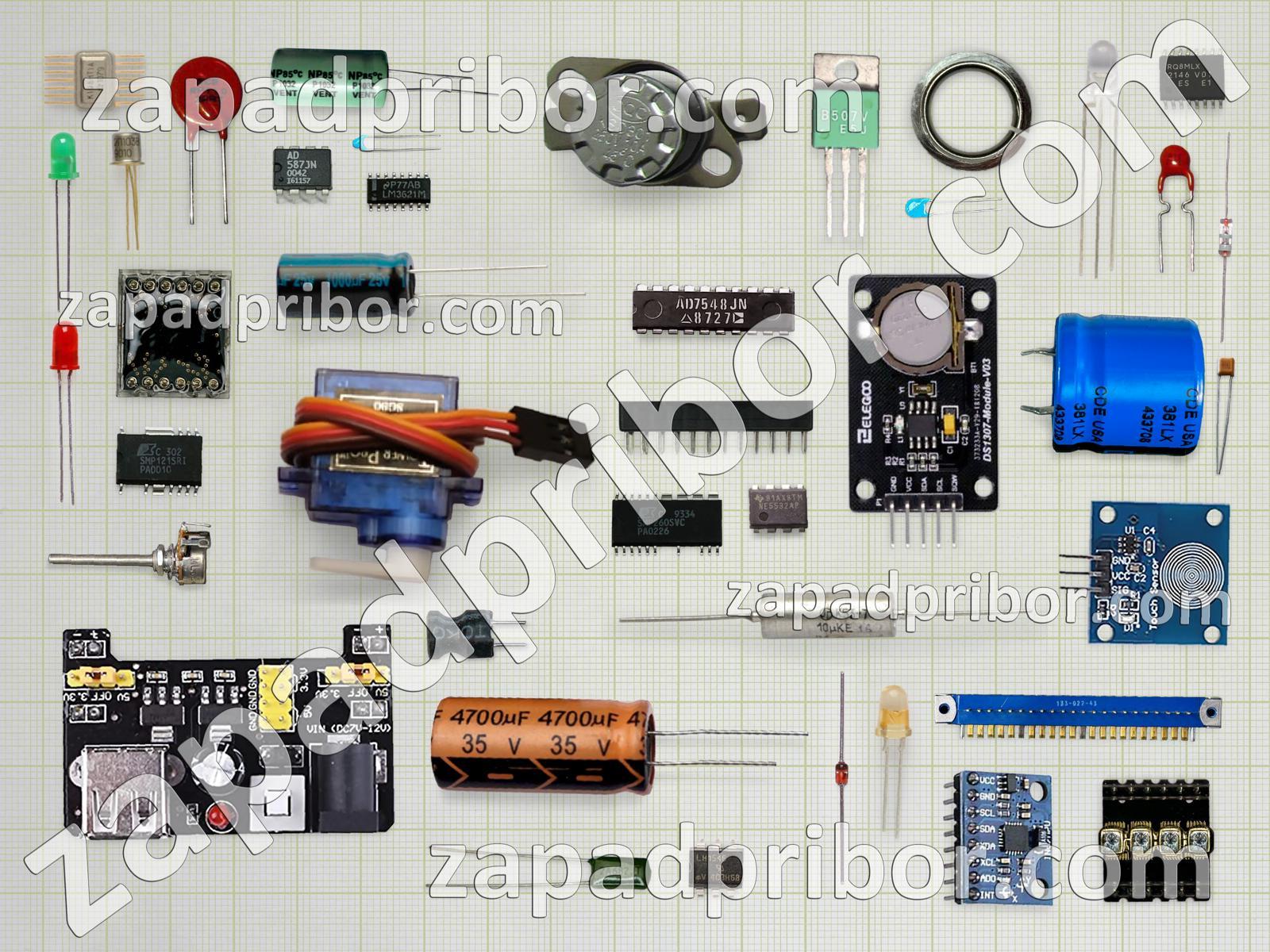 Кроме этих радиодеталей на нашем сайте вы сможете найти большой перечень компонентов. Осуществляйте поиск по основным типам радиодеталей таких как преобразователь, дроссель, резистор, соединитель, экран, разъем, реле, диодный мост, светодиод, транзистор, конденсатор, усилитель, контакты, индуктивность, трансформатор, индикатор, тиристор, датчик, фотодиод, адаптер, диод, колодки, микросхема, резонатор, переключатель, дисплей, кнопка, тумблер и другие.