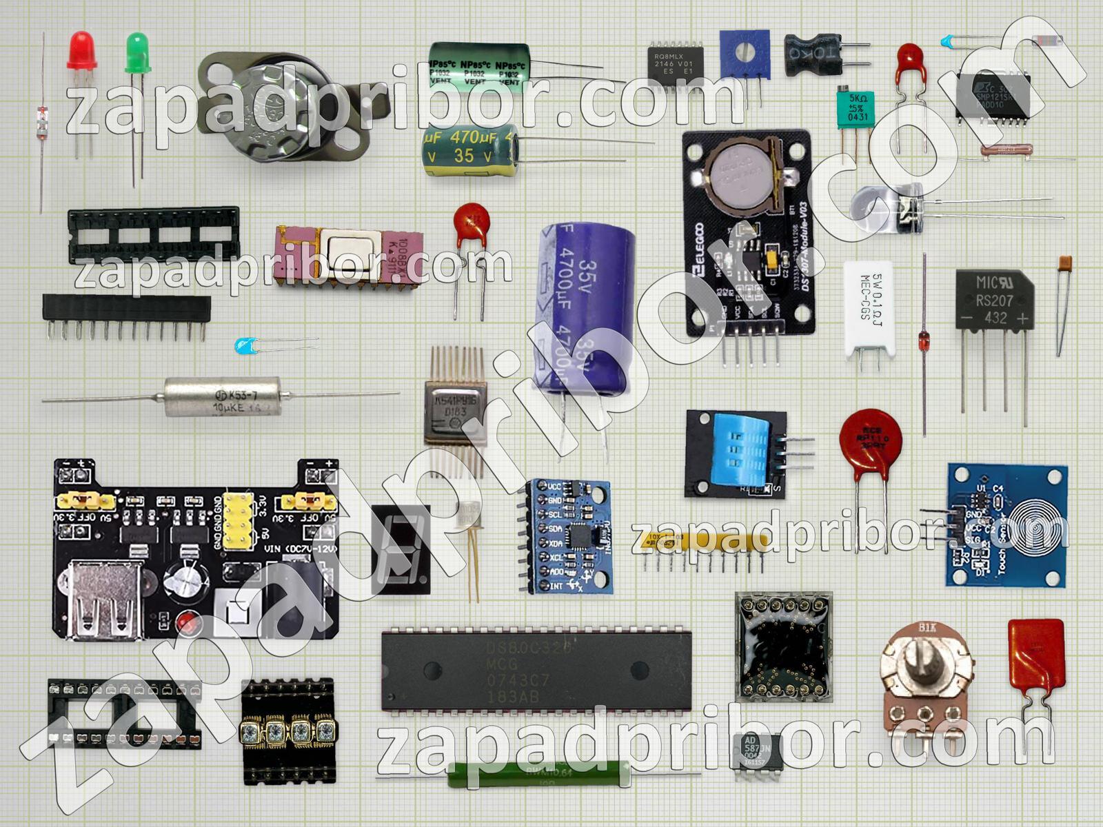 Кроме этих радиодеталей на нашем сайте вы сможете найти большой перечень компонентов. Осуществляйте поиск по основным типам радиодеталей таких как индуктивность, соединитель, микросхема, усилитель, дисплей, тиристор, колодки, диодный мост, резонатор, адаптер, конденсатор, диод, транзистор, светодиод, фотодиод, резистор, разъем, преобразователь, переключатель, реле, контакты, экран, тумблер, индикатор, кнопка, дроссель, трансформатор, датчик и другие.