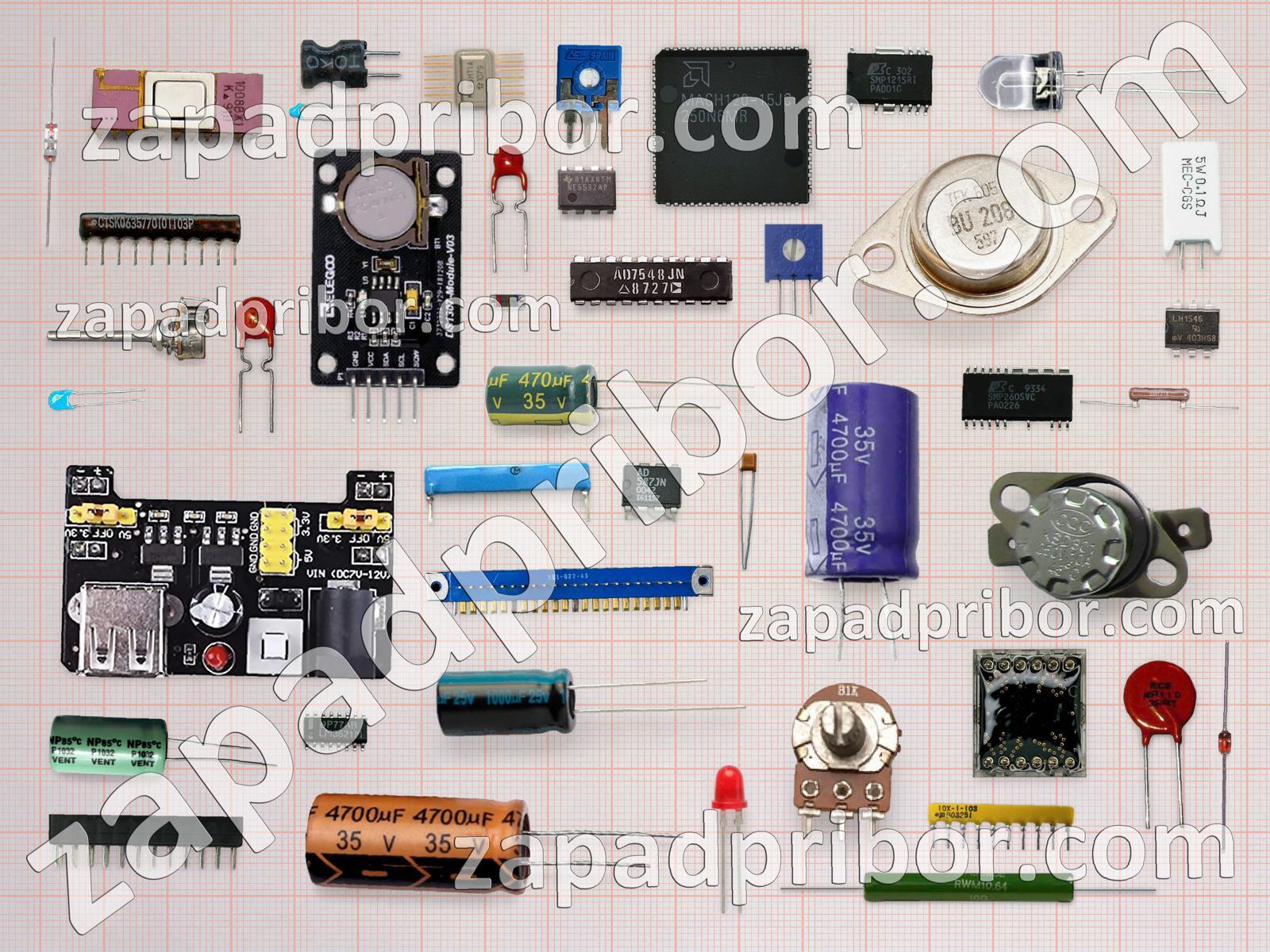 Кроме этих радиодеталей на нашем сайте вы сможете найти большой перечень компонентов. Осуществляйте поиск по основным типам радиодеталей таких как преобразователь, датчик, колодки, диодный мост, транзистор, дроссель, переключатель, трансформатор, диод, резистор, тиристор, разъем, фотодиод, дисплей, конденсатор, реле, светодиод, экран, соединитель, индикатор, контакты, кнопка, тумблер, адаптер, микросхема, резонатор, индуктивность, усилитель и другие.