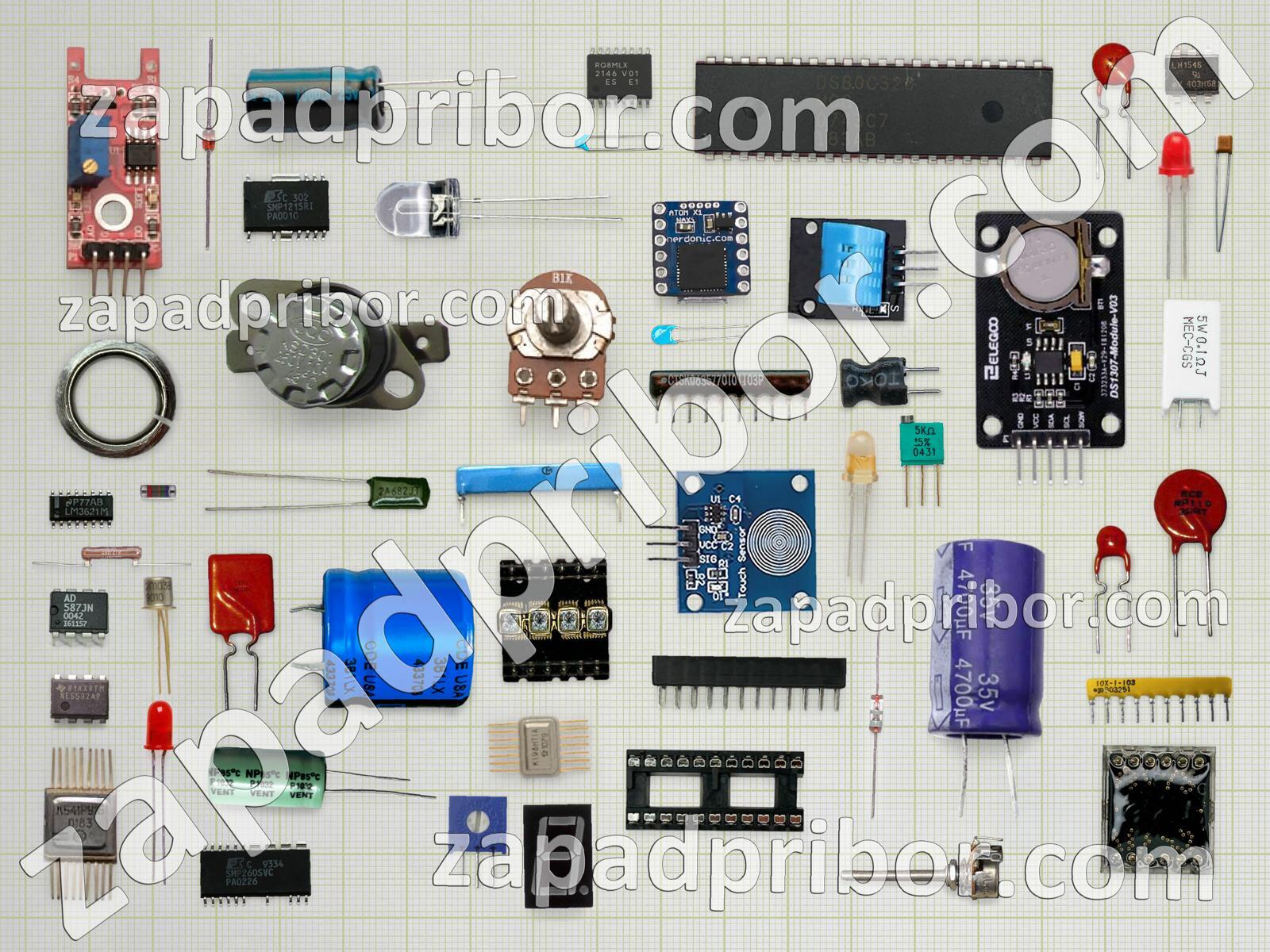 Кроме этих радиодеталей на нашем сайте вы сможете найти большой перечень компонентов. Осуществляйте поиск по основным типам радиодеталей таких как резистор, тумблер, кнопка, индуктивность, разъем, фотодиод, диод, переключатель, дисплей, индикатор, светодиод, микросхема, конденсатор, датчик, резонатор, контакты, преобразователь, колодки, экран, адаптер, реле, диодный мост, усилитель, соединитель, тиристор, транзистор, дроссель, трансформатор и другие.