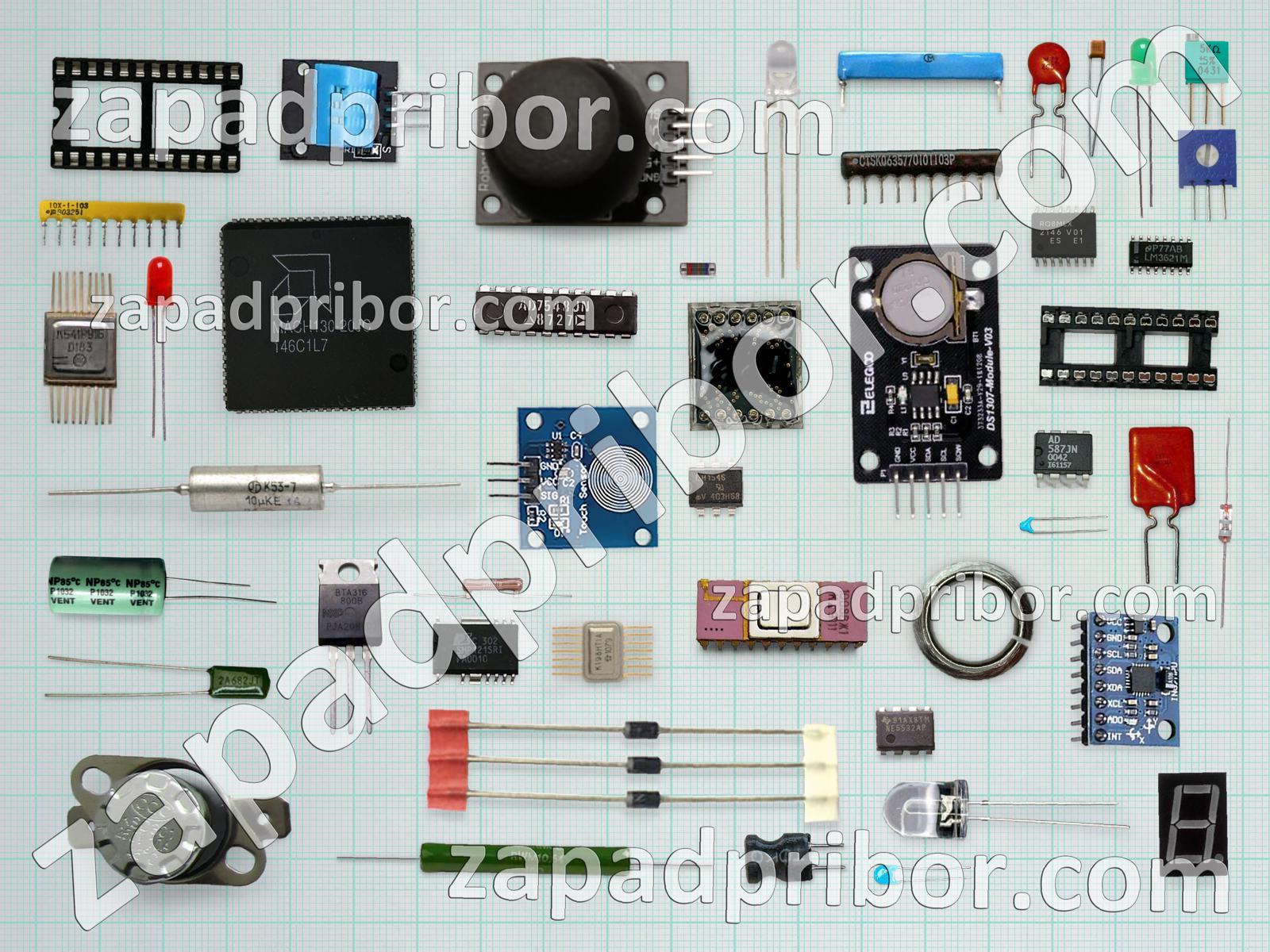 Кроме этих радиодеталей на нашем сайте вы сможете найти большой перечень компонентов. Осуществляйте поиск по основным типам радиодеталей таких как контакты, адаптер, дисплей, светодиод, преобразователь, усилитель, переключатель, датчик, разъем, экран, фотодиод, индикатор, дроссель, кнопка, конденсатор, резистор, соединитель, микросхема, тиристор, резонатор, трансформатор, колодки, тумблер, диодный мост, транзистор, диод, реле, индуктивность и другие.