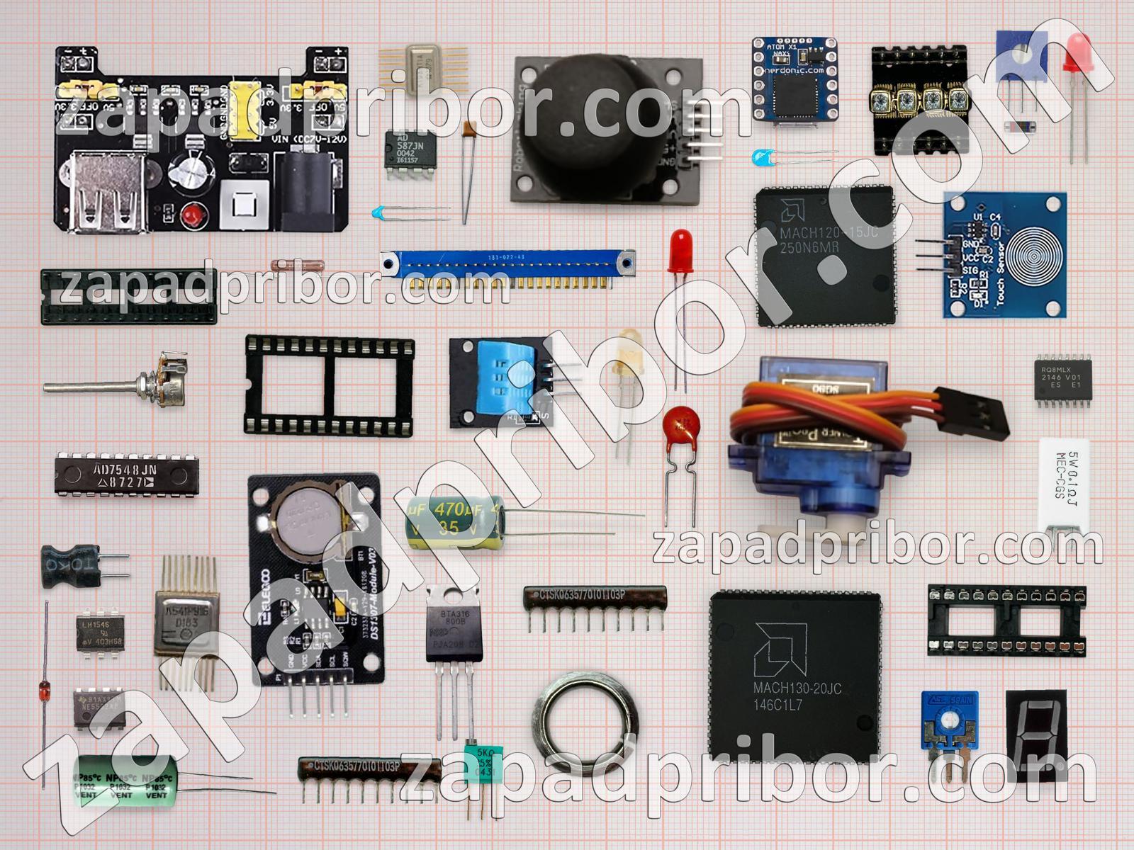 Кроме этих радиодеталей на нашем сайте вы сможете найти большой перечень компонентов. Осуществляйте поиск по основным типам радиодеталей таких как разъем, фотодиод, резонатор, адаптер, переключатель, кнопка, преобразователь, экран, колодки, светодиод, резистор, реле, дисплей, транзистор, тумблер, индикатор, конденсатор, усилитель, тиристор, трансформатор, диодный мост, индуктивность, диод, дроссель, контакты, соединитель, датчик, микросхема и другие.