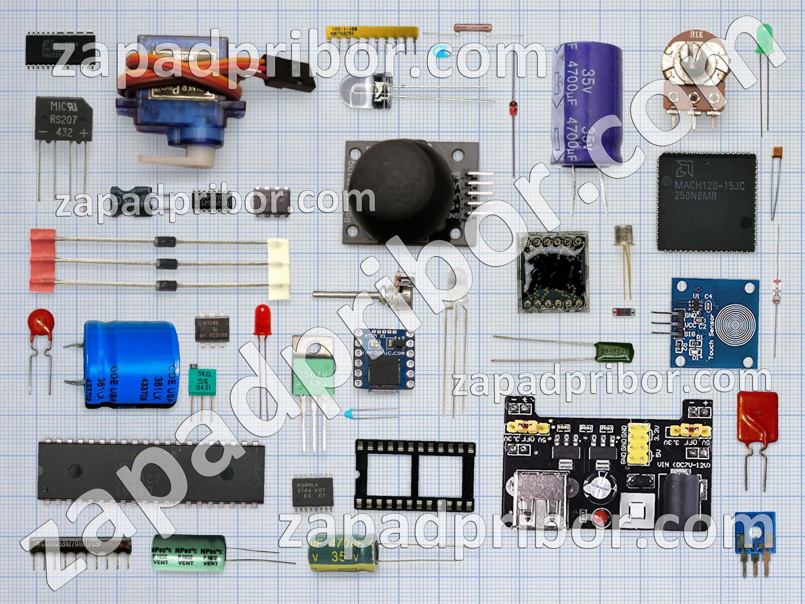 Кроме этих радиодеталей на нашем сайте вы сможете найти большой перечень компонентов. Осуществляйте поиск по основным типам радиодеталей таких как переключатель, разъем, дроссель, тиристор, усилитель, конденсатор, кнопка, микросхема, резистор, диодный мост, соединитель, резонатор, экран, реле, адаптер, трансформатор, преобразователь, тумблер, контакты, дисплей, индуктивность, колодки, индикатор, датчик, транзистор, диод, светодиод, фотодиод и другие.